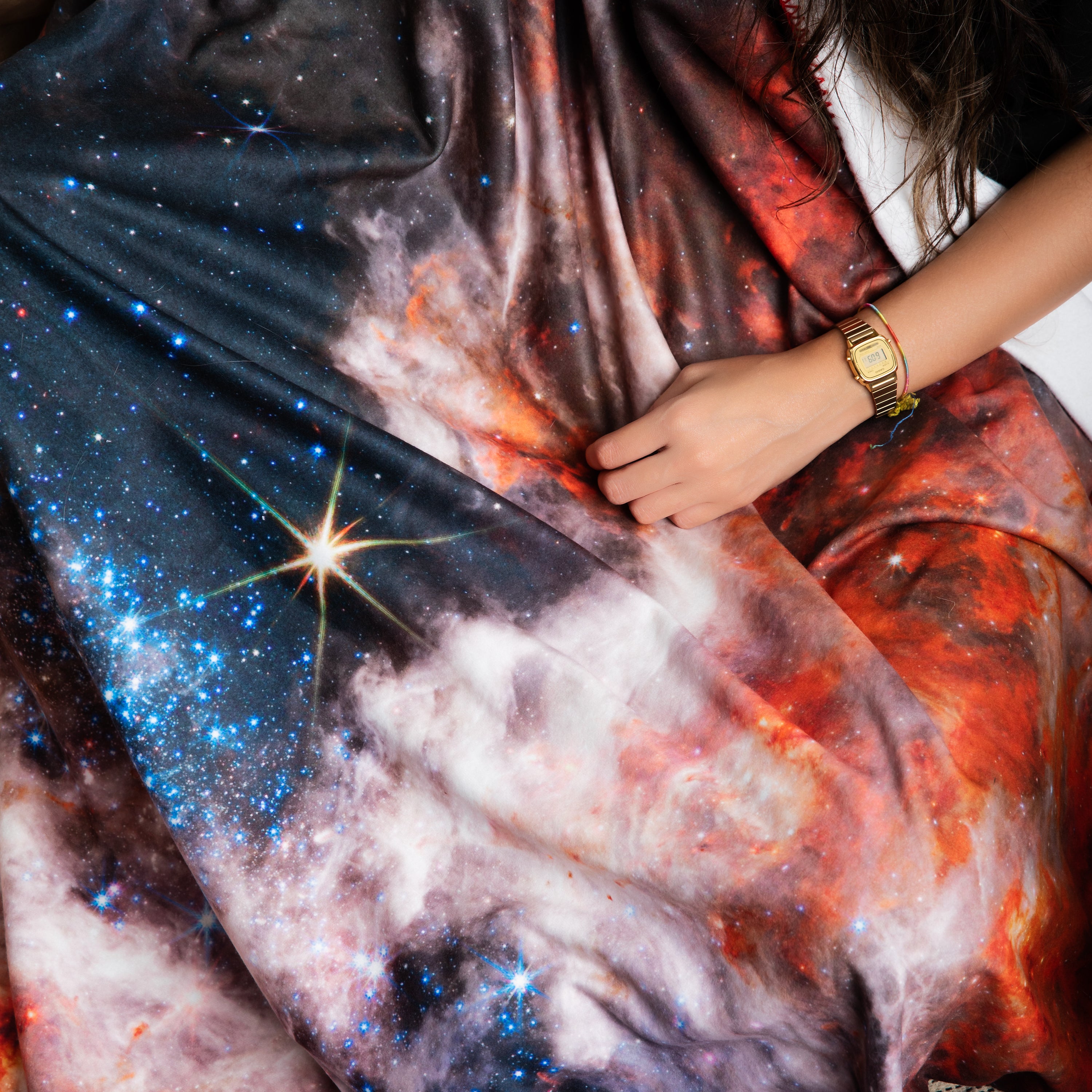 James Webb Uzay Teleskobunun bize sunduğu uzayın muhteşem görüntülerden sonuncusu olan Kozmik Tarantula şimdi polar tv battaniyesi olarak sizinle. Tarantula Bulutsusu olarakta bilinen ve dünyamızdan 160 bin ışık yılı uzaklıkta olan bu yıldız topluluğu kozmik toz nedeniyle muhteşem bir görüntü oluşturmakta. James Webb Uzay Teleskobu tarafından yakalanan bu muhteşem polar battaniyeyi üstün baskı kalitesi ile kışın üzerinizden ayırmayacaksınız!