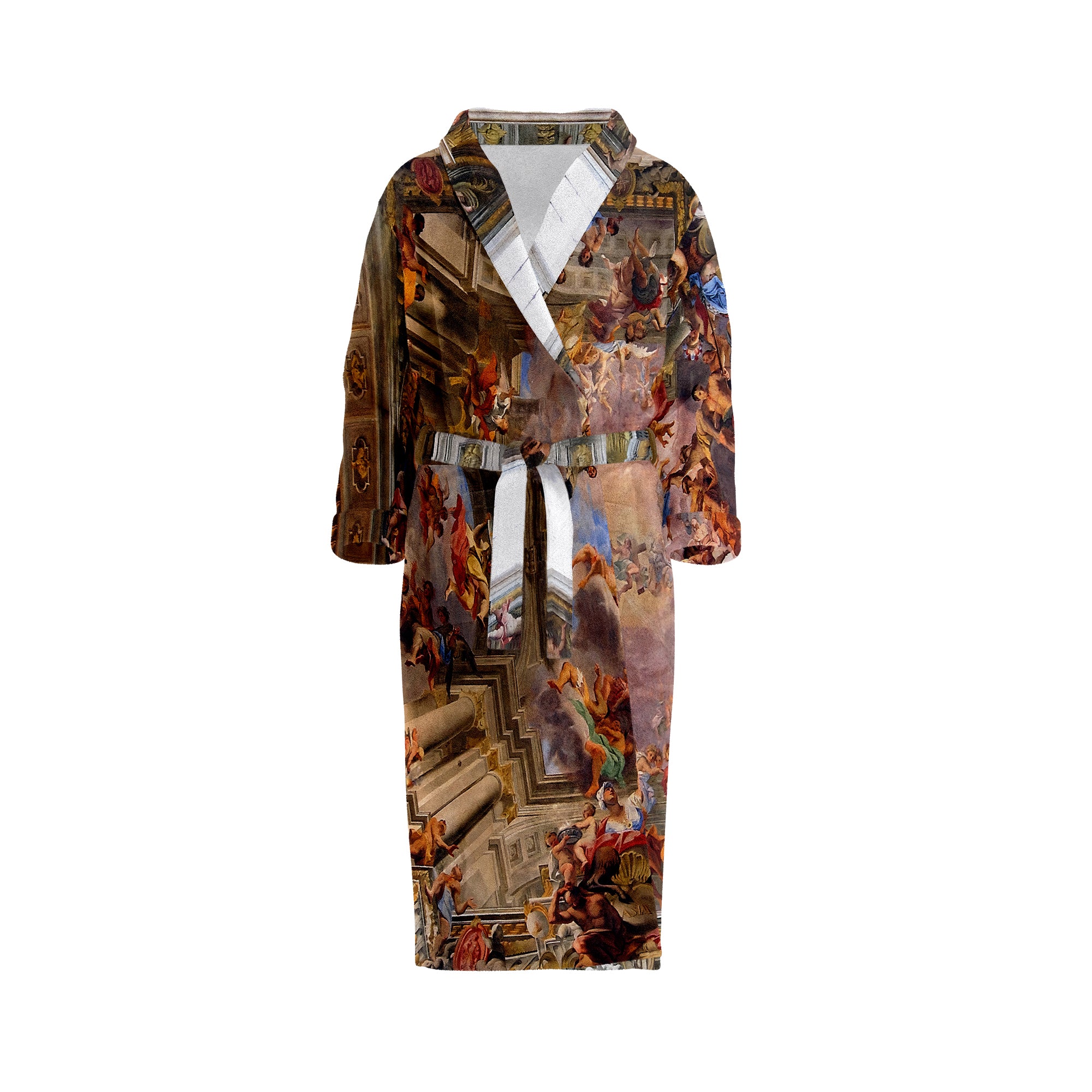 Kadifemsi dış yüzeyi ve yüksek su emici pamuk iç yüzeye sahip bu harika Andrea Pozzo eseri baskılı bornozu üstünüzden hiç çıkartmak istemeyeceksiniz.
