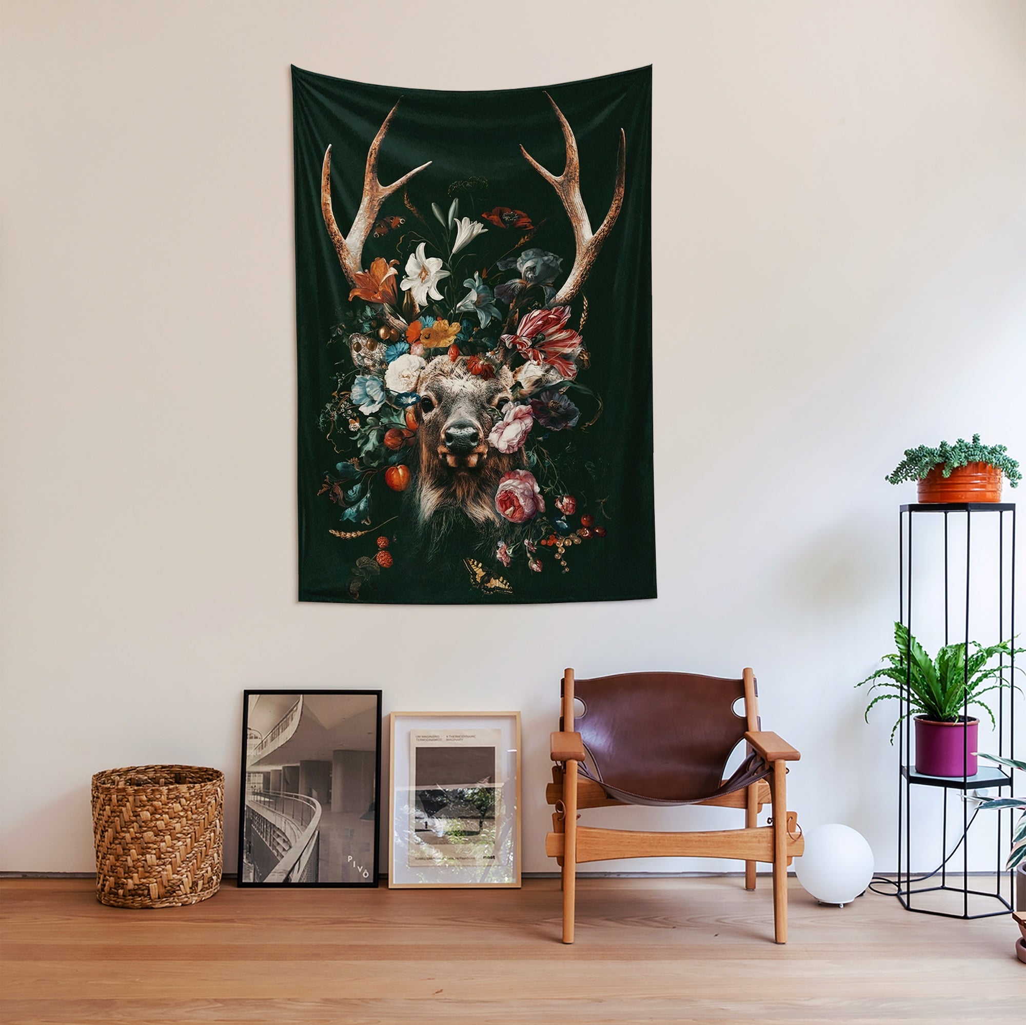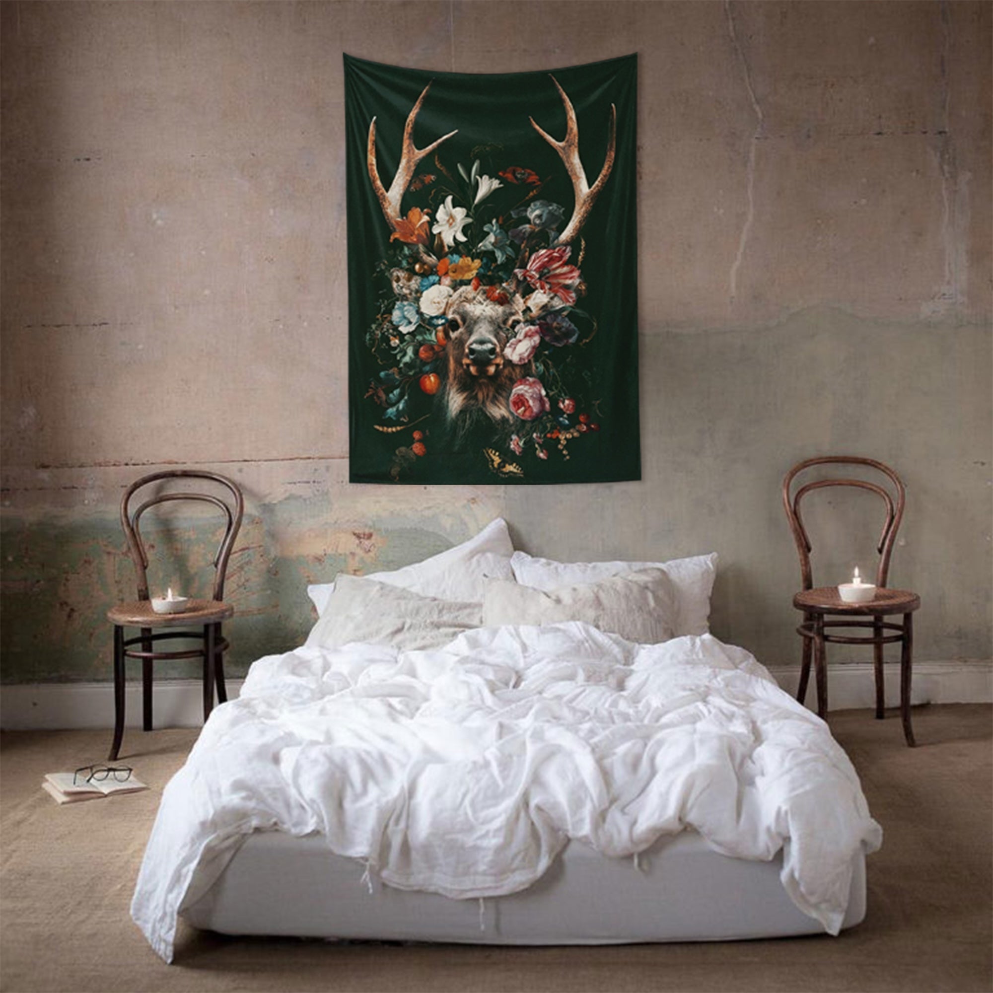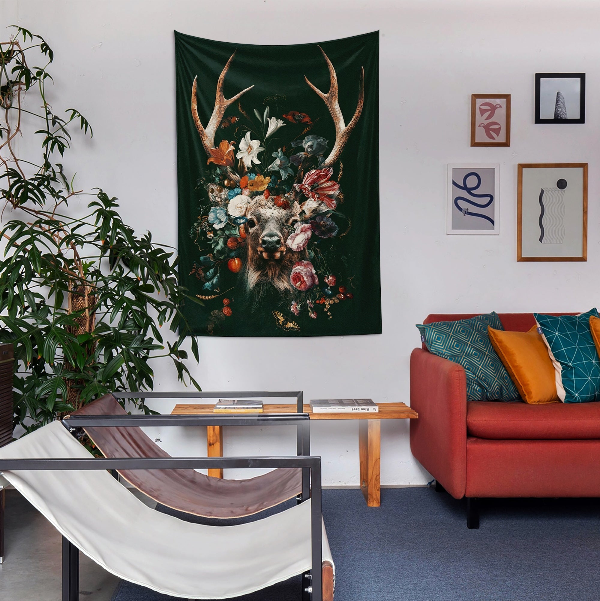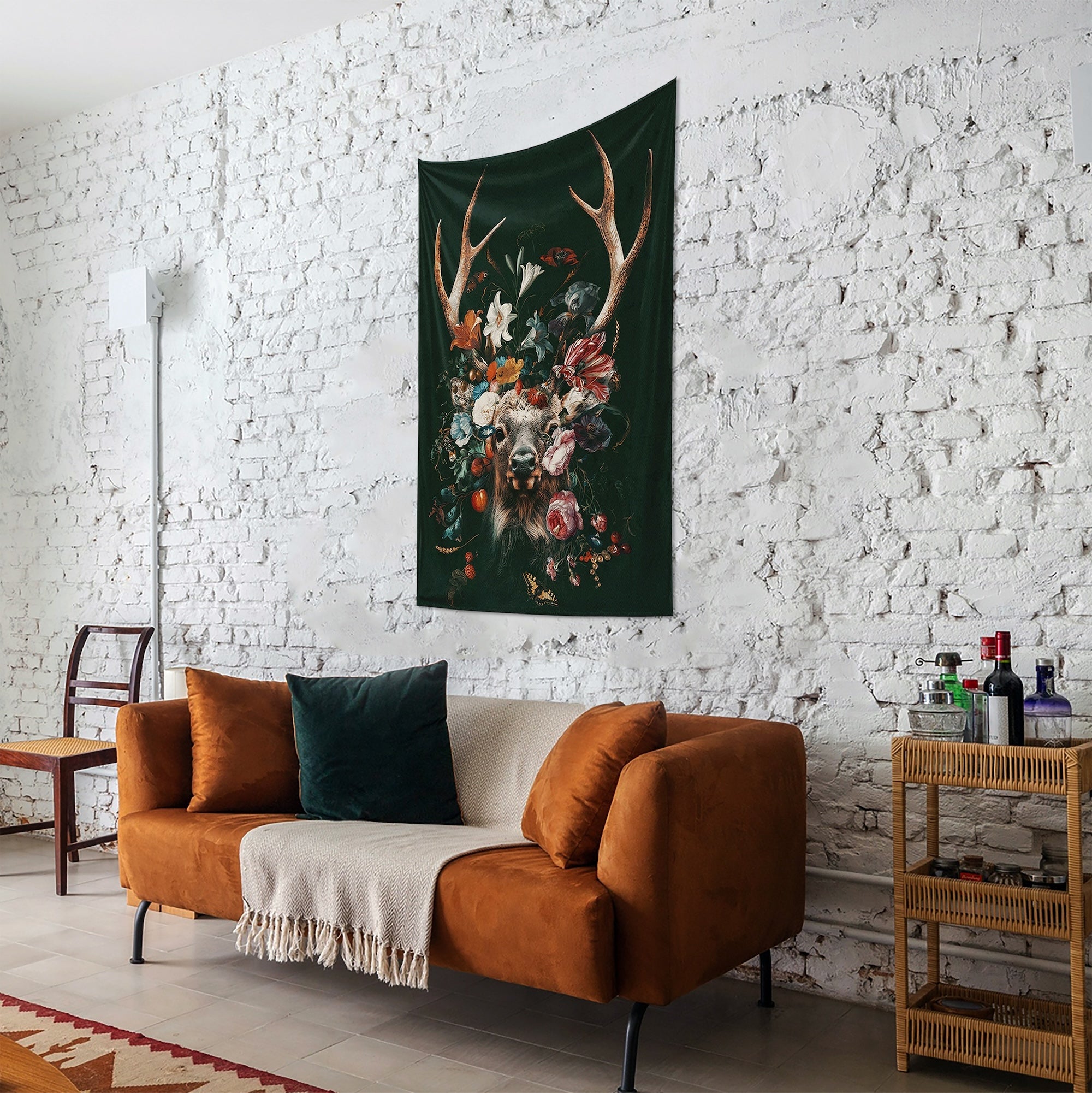 Floral Deer Duvar Örtüsü