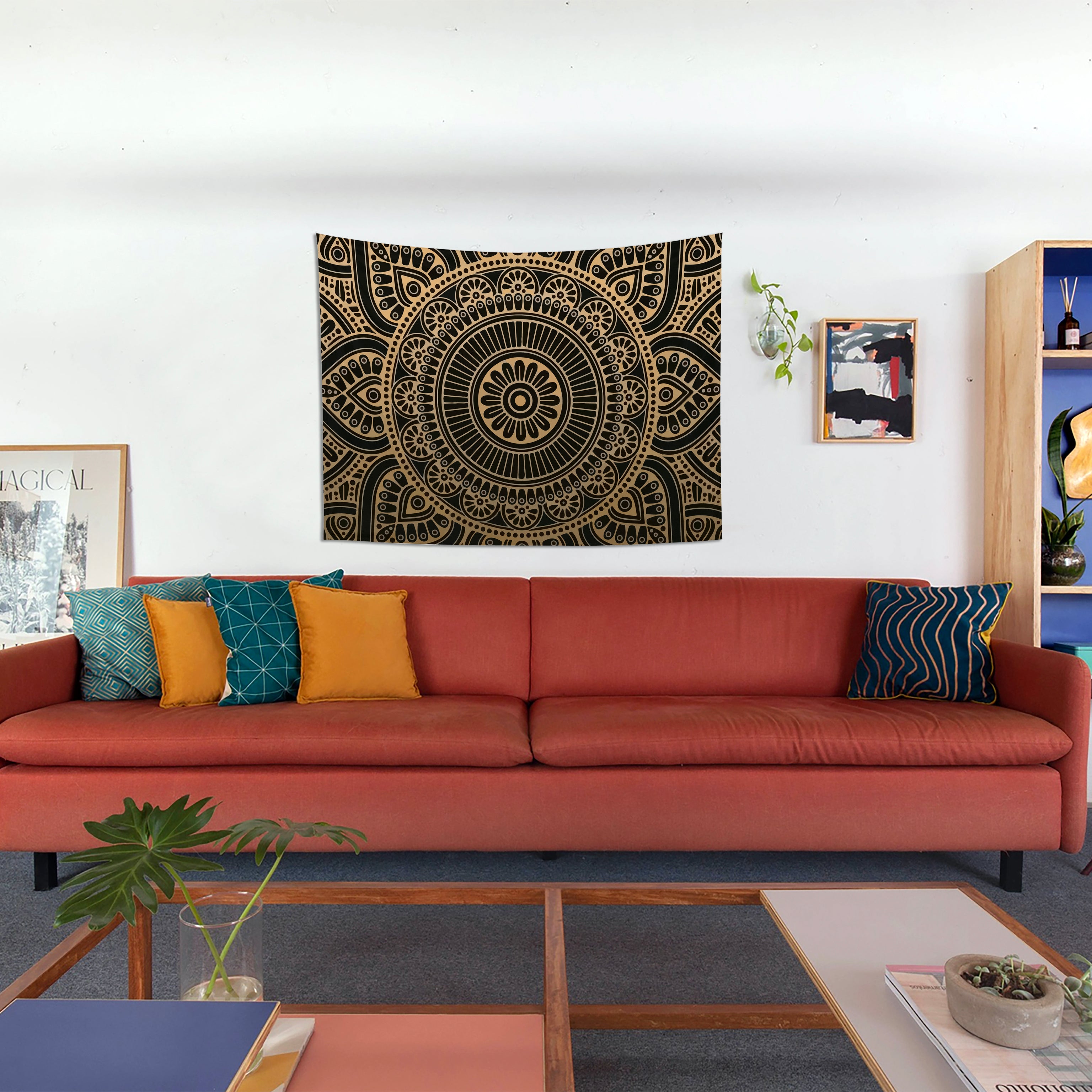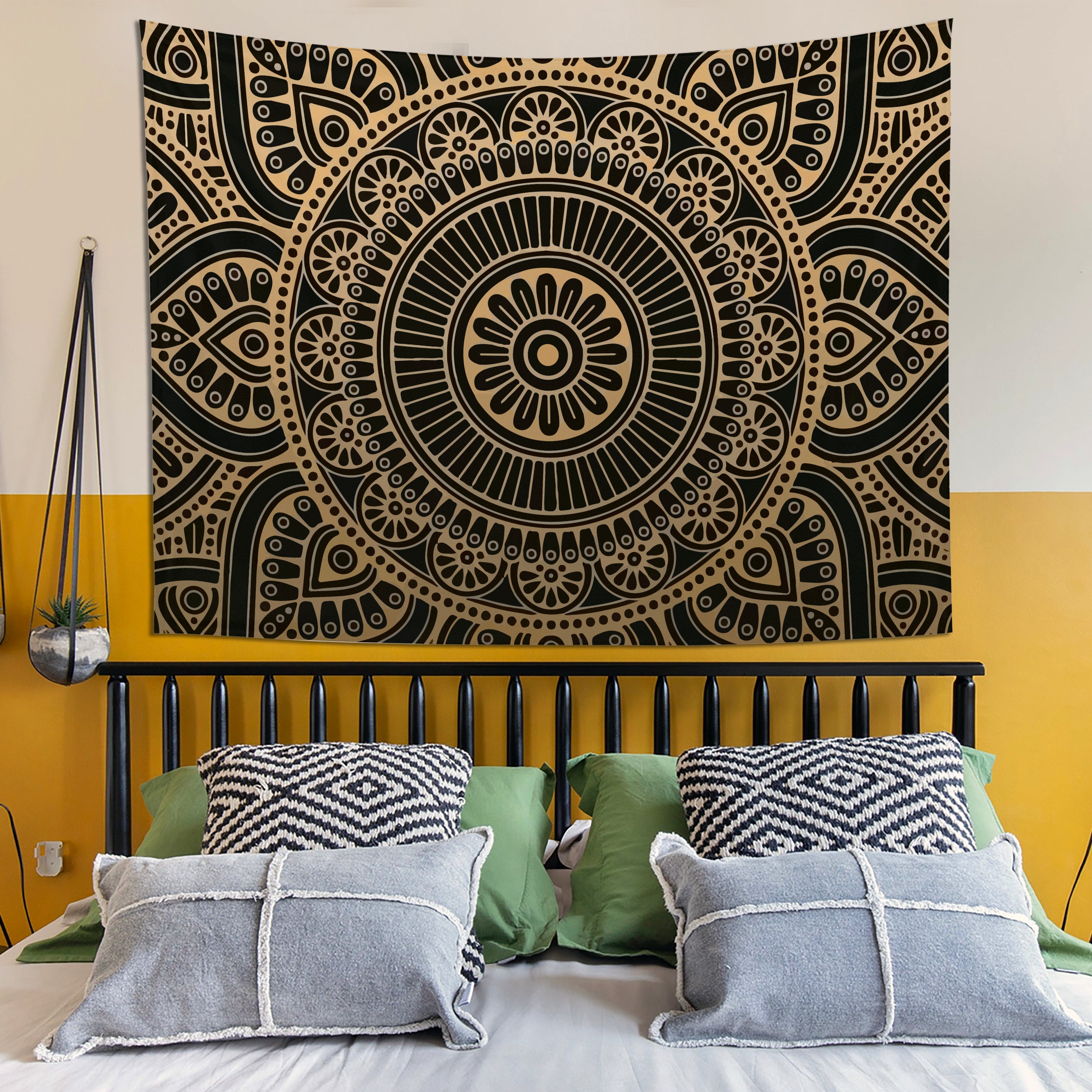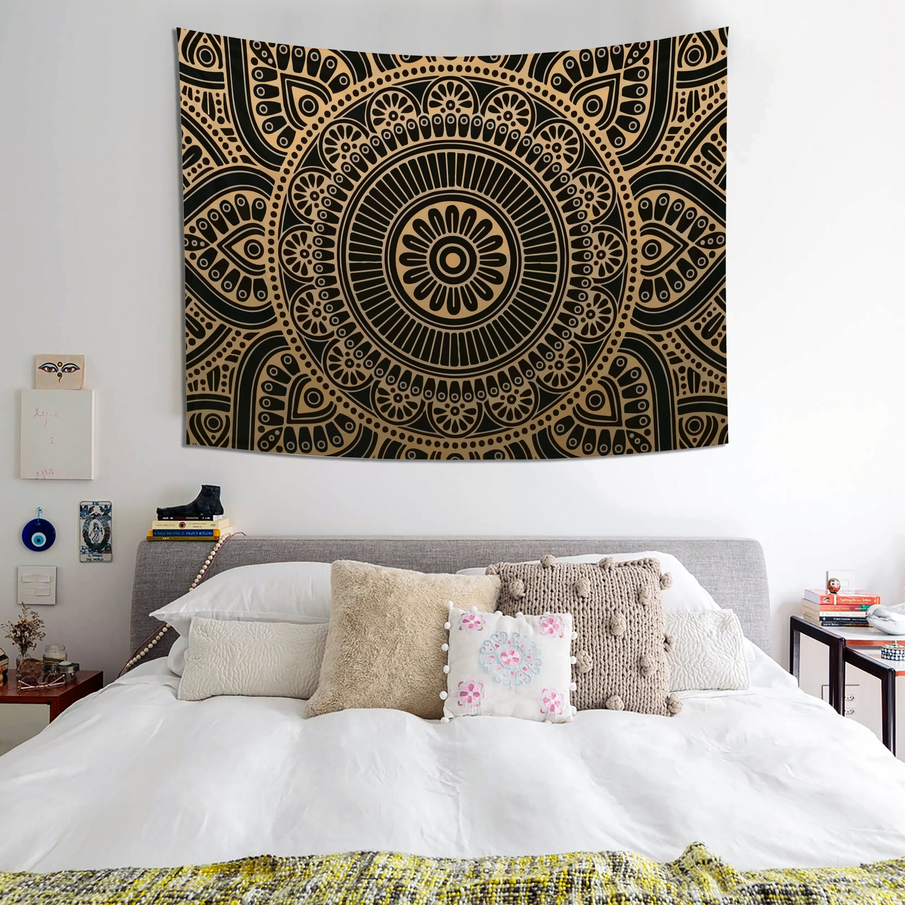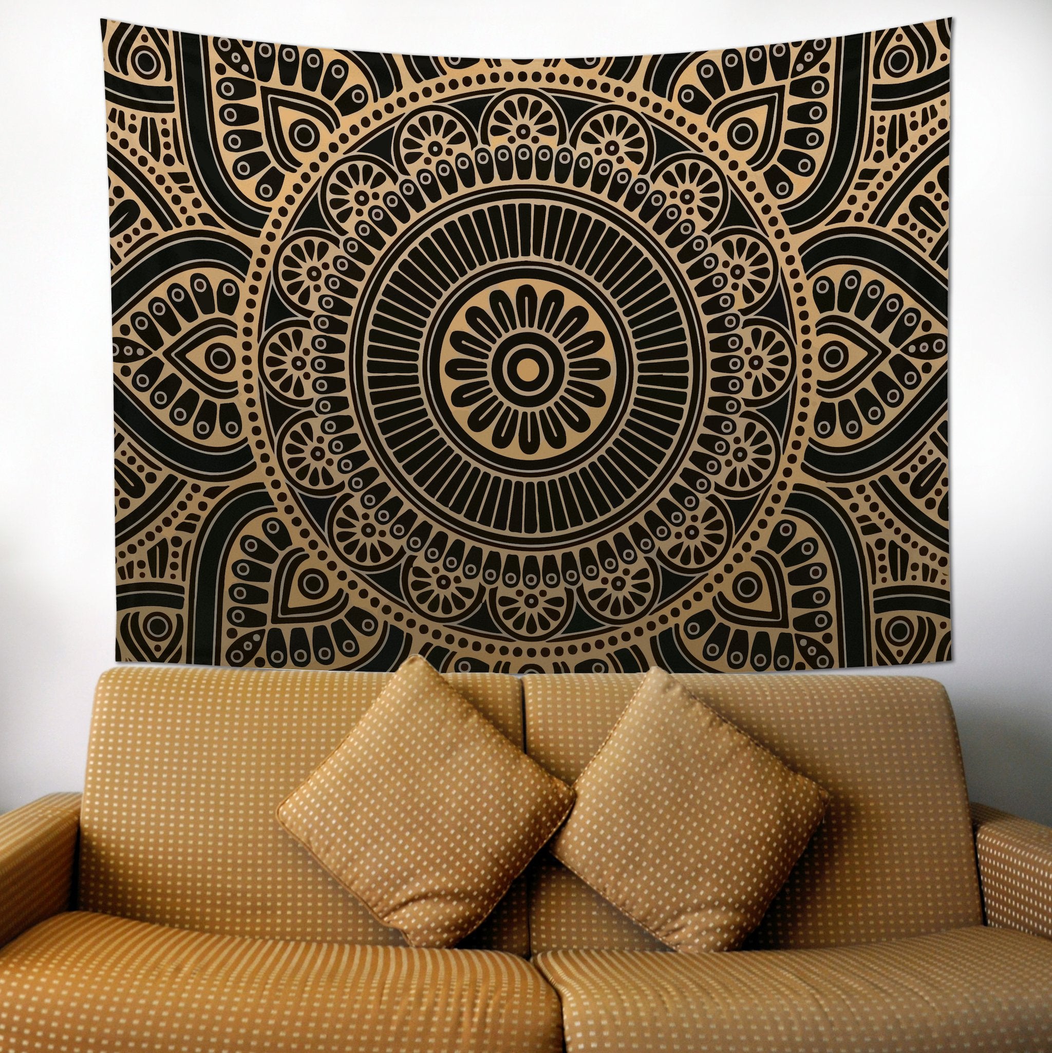 Freud’un öğrencisi psikanalist Carl Jung mandalayı “alt bilincin kendini ifade etmesi” olarak tanımlamıştır. Gold Mandala Duvar örtüsü güzel enerjiler yüklenerek yaşam alanlarınıza huzur, bereket, mutluluk getirmesi için özenle tasarlandı. Duvar örtülerimizi sadece duvar örtüsü olarak değil masanızda, üzerinize şal ve belki mini pikniğinizde çimlere sereceğiniz bir örtü olarak yanınızdan hiç ayırmak istemeyeceksiniz.