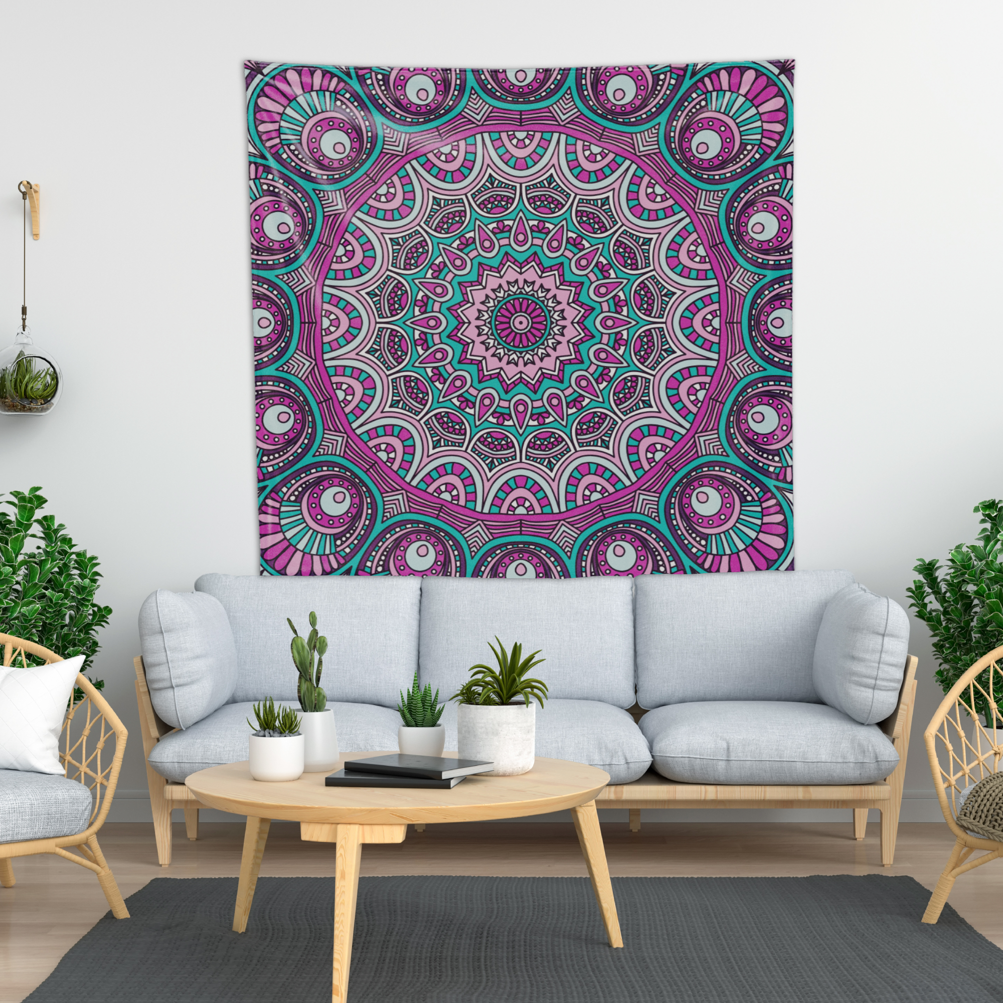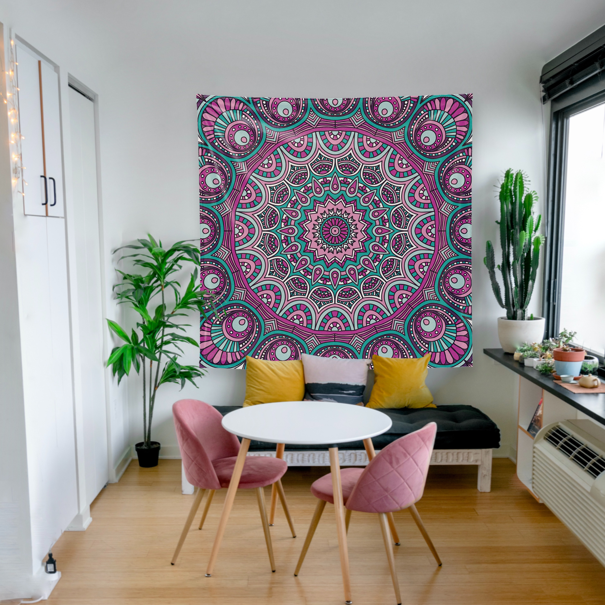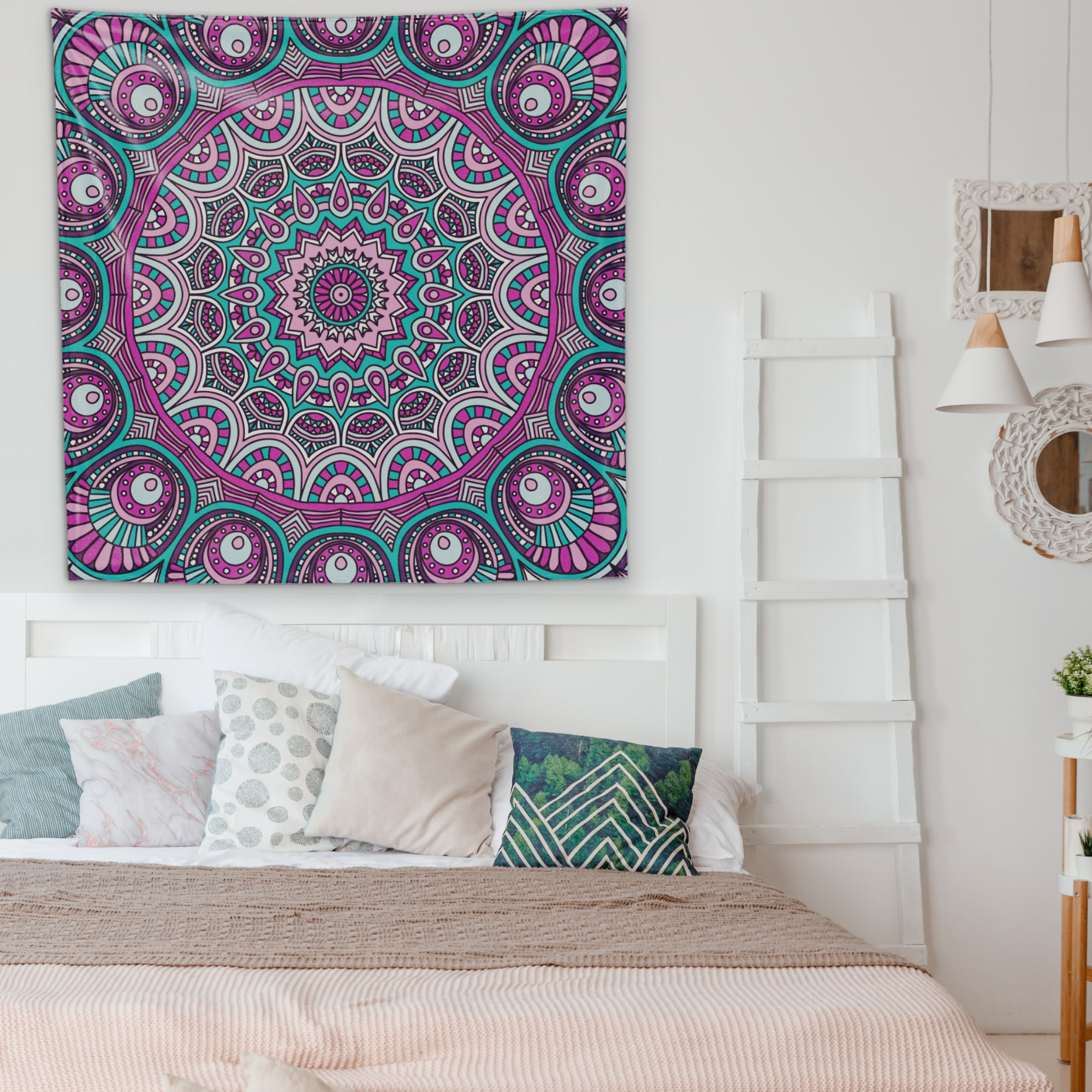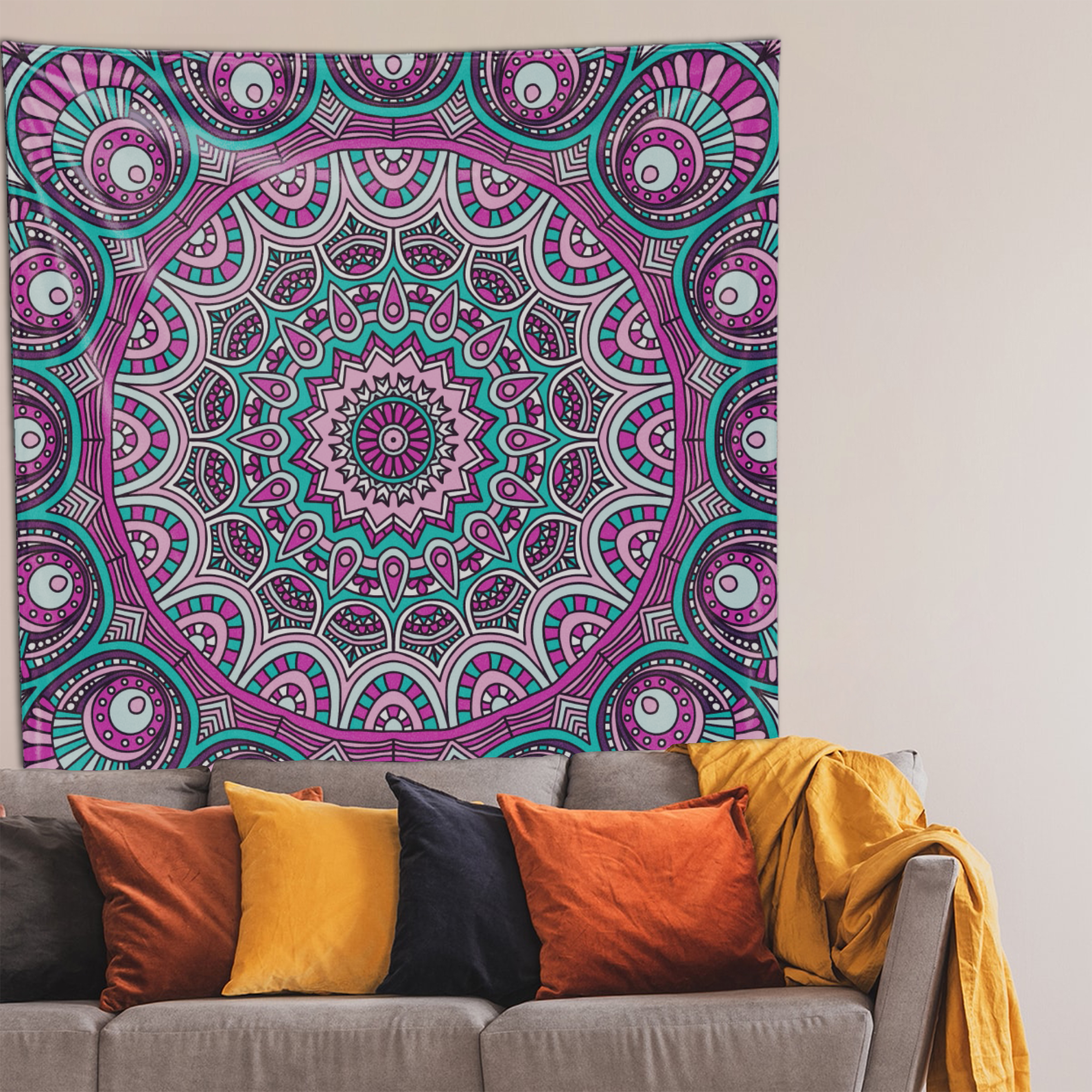Doğu dilinde ‘Enerjiyi tutan kap’ olarak bilinen mandala ile zarafet, zenginlik ve asaletin rengi moru harmanladık Purple Mandala duvar örtüsünü tasarladık. Duvarınızdan masanıza, piknik örtüsü olarak hatta bir sahil kenarında üşüdüğünüzde şal olarak kullanabileceğiniz Purple Mandalayı yanınızdan ayırmak istemeyeceksiniz.