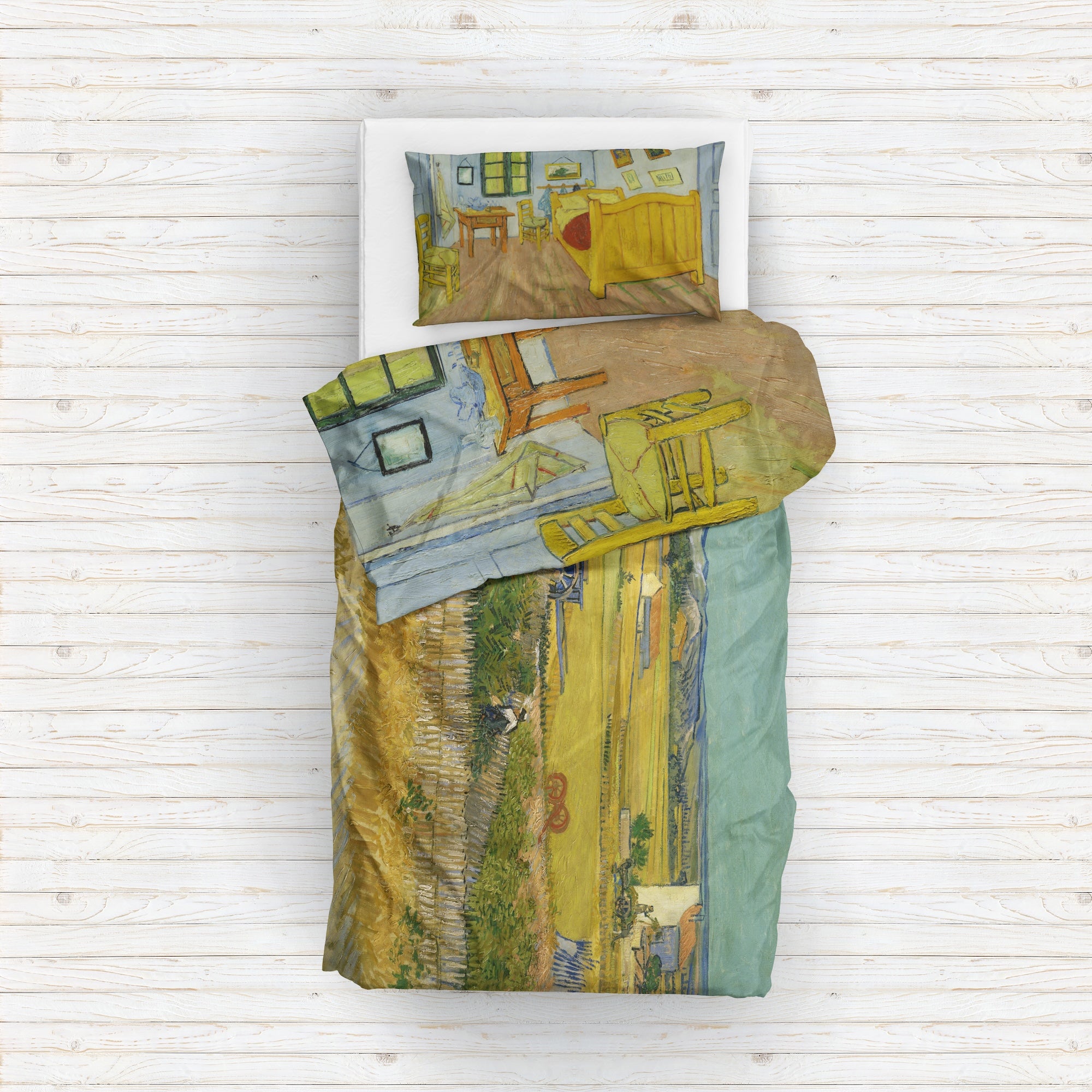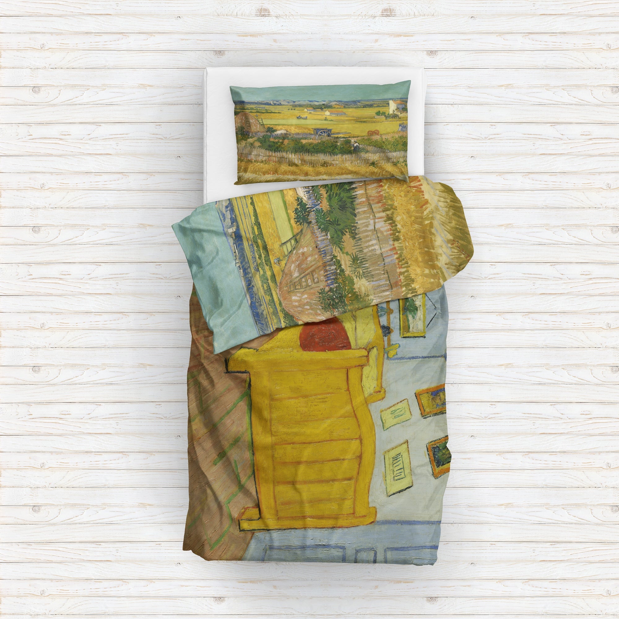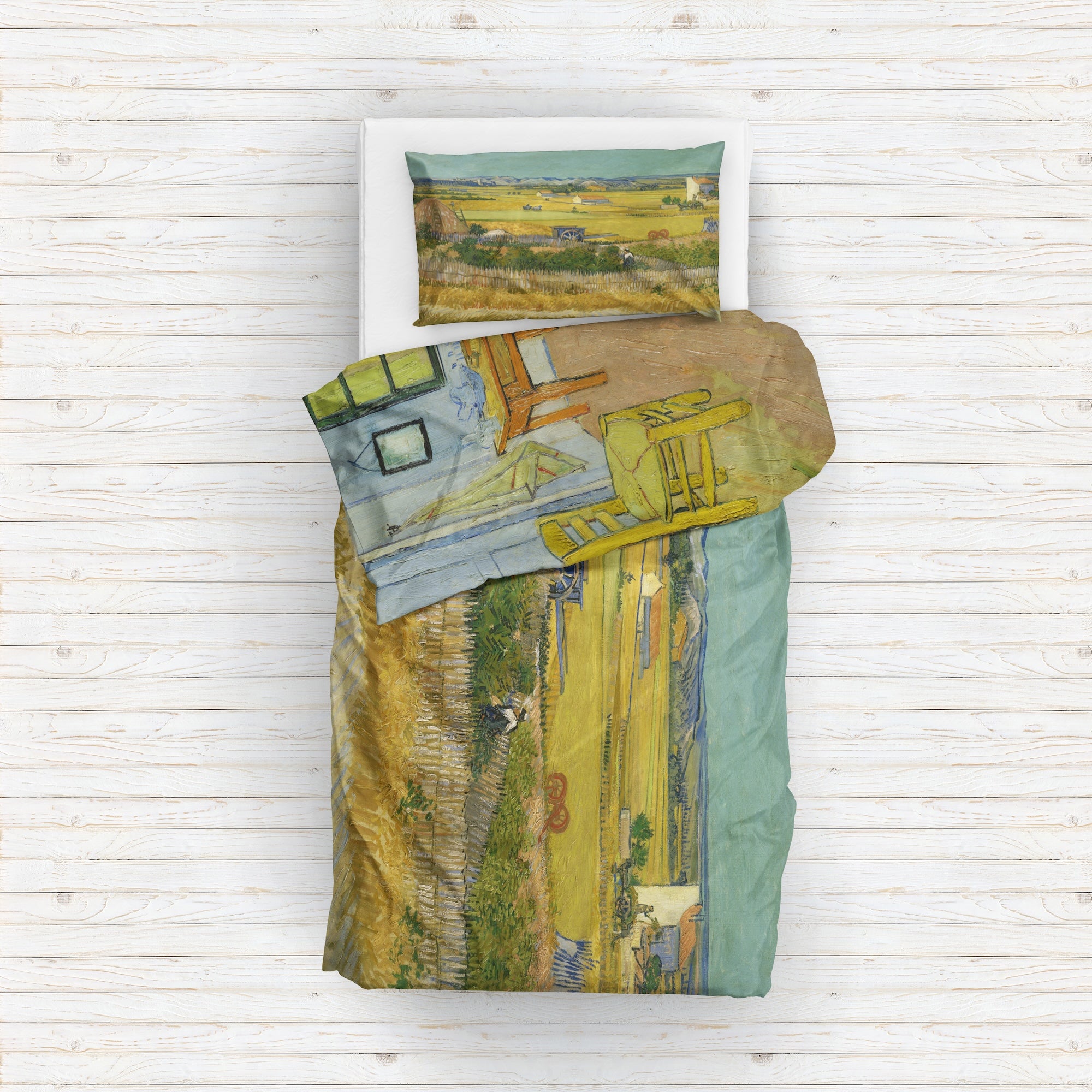 Mavi Arabalı Hasat Manzarası & Arles'teki Yatak Odası Çift Taraflı Nevresim Takımı