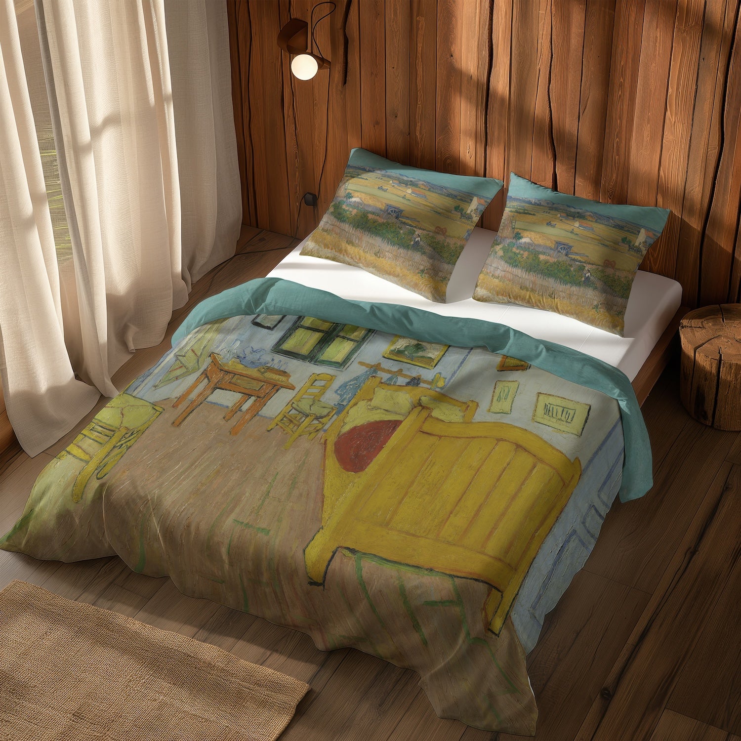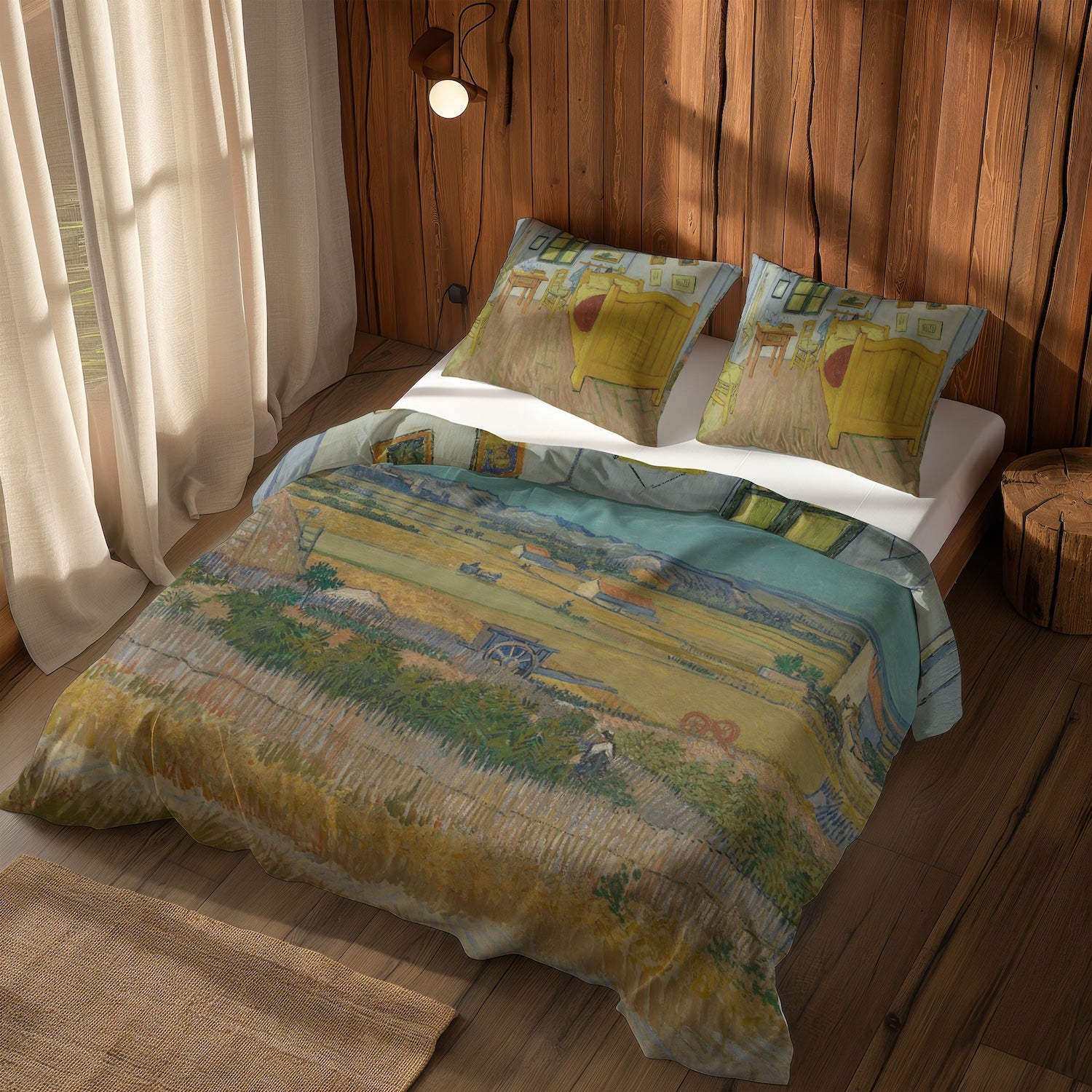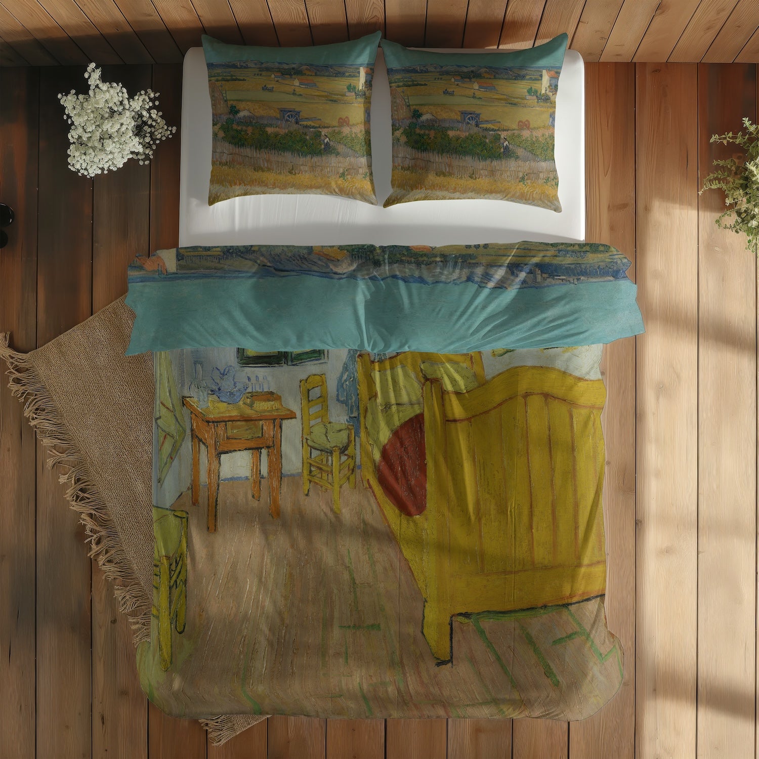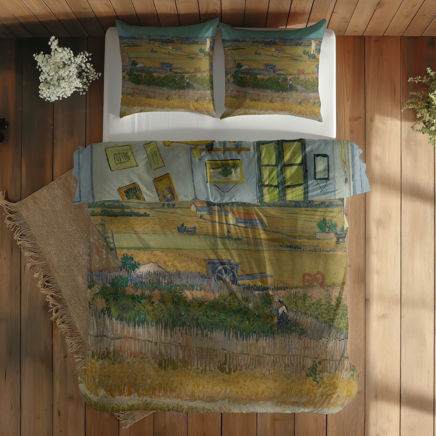 Mavi Arabalı Hasat Manzarası & Arles'teki Yatak Odası Çift Taraflı Nevresim Takımı
