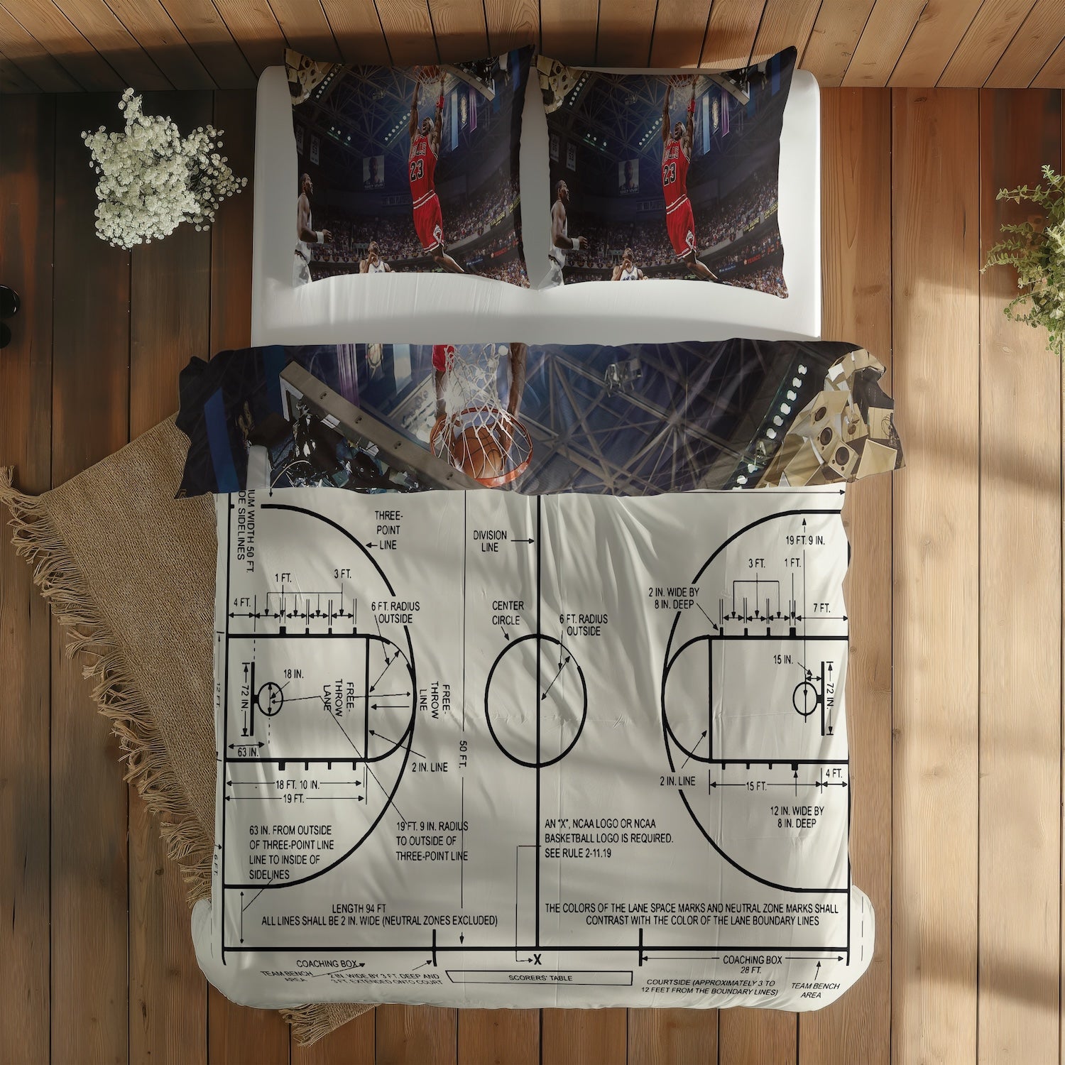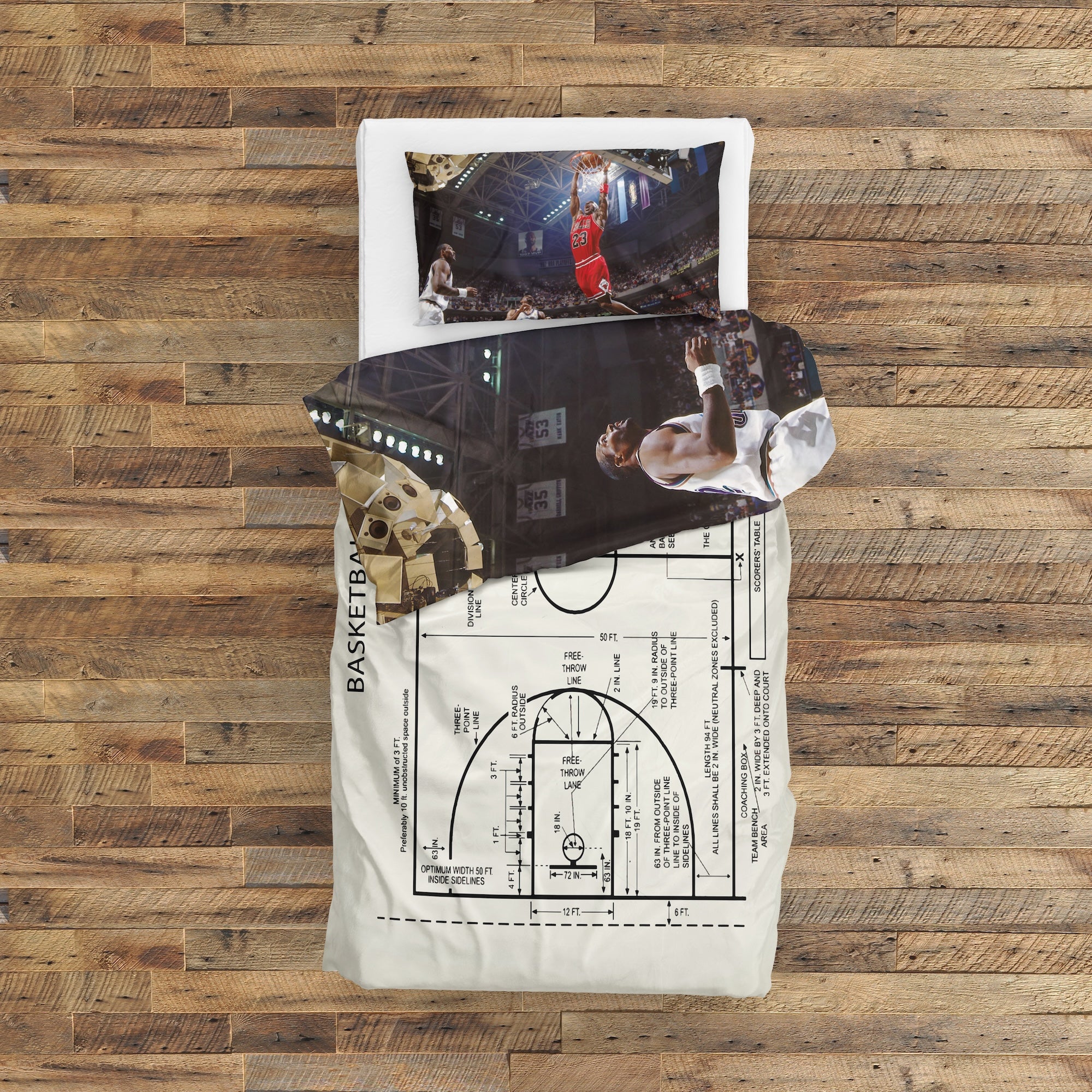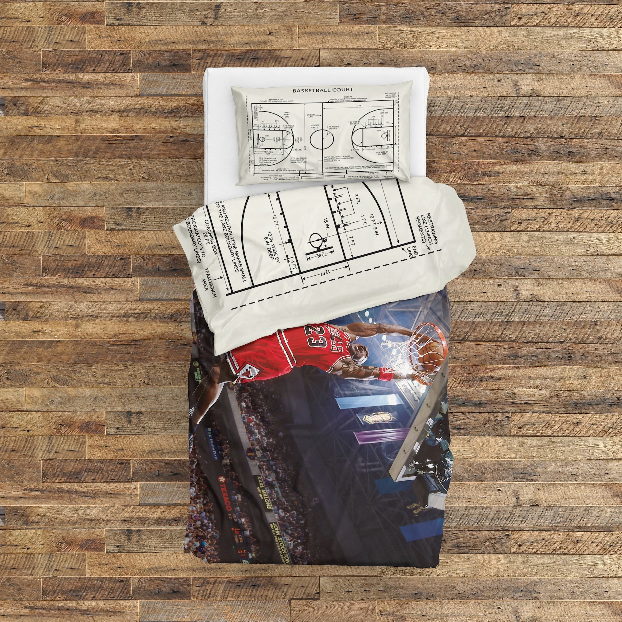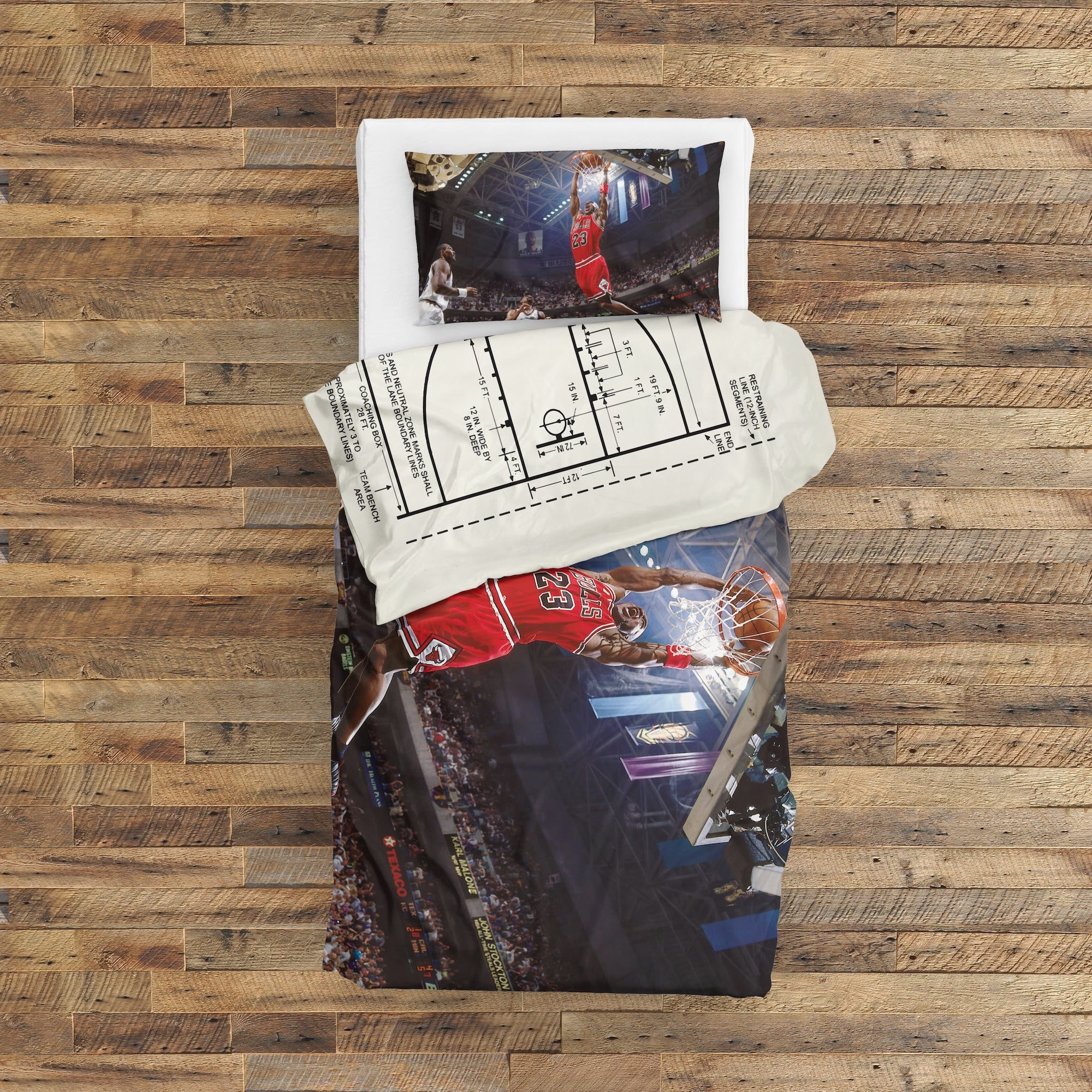Michael Jordan Chicago Bulls 1997 & Basketball Court Ivory Çift Taraflı Nevresim Takımı