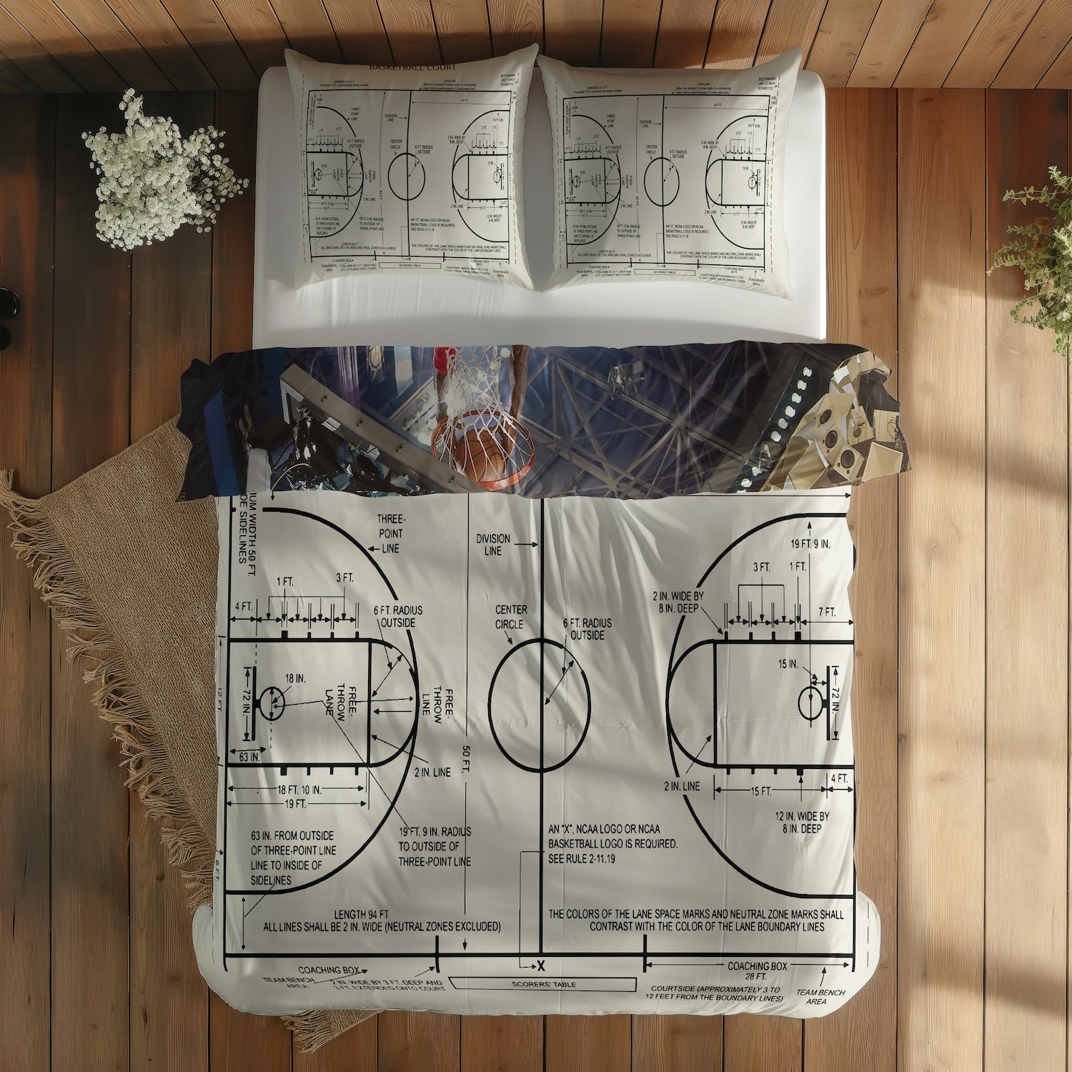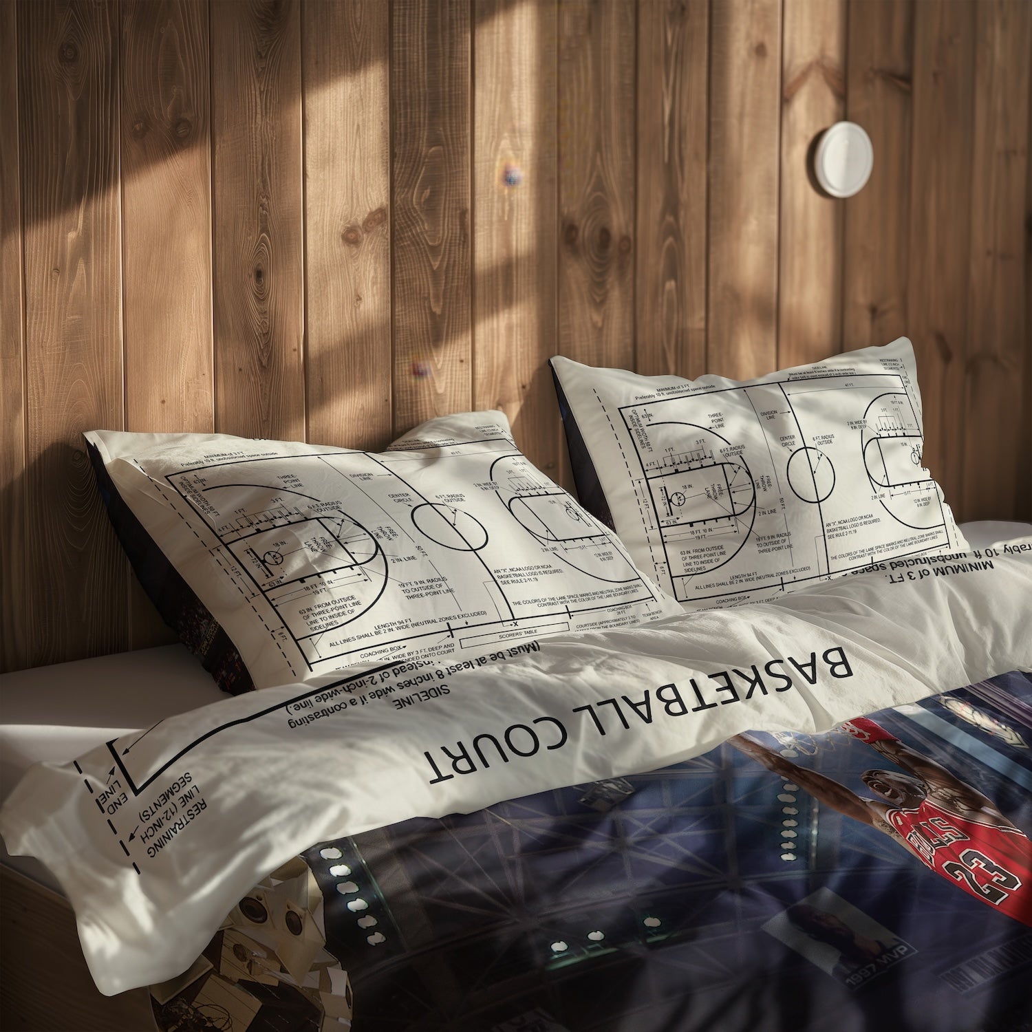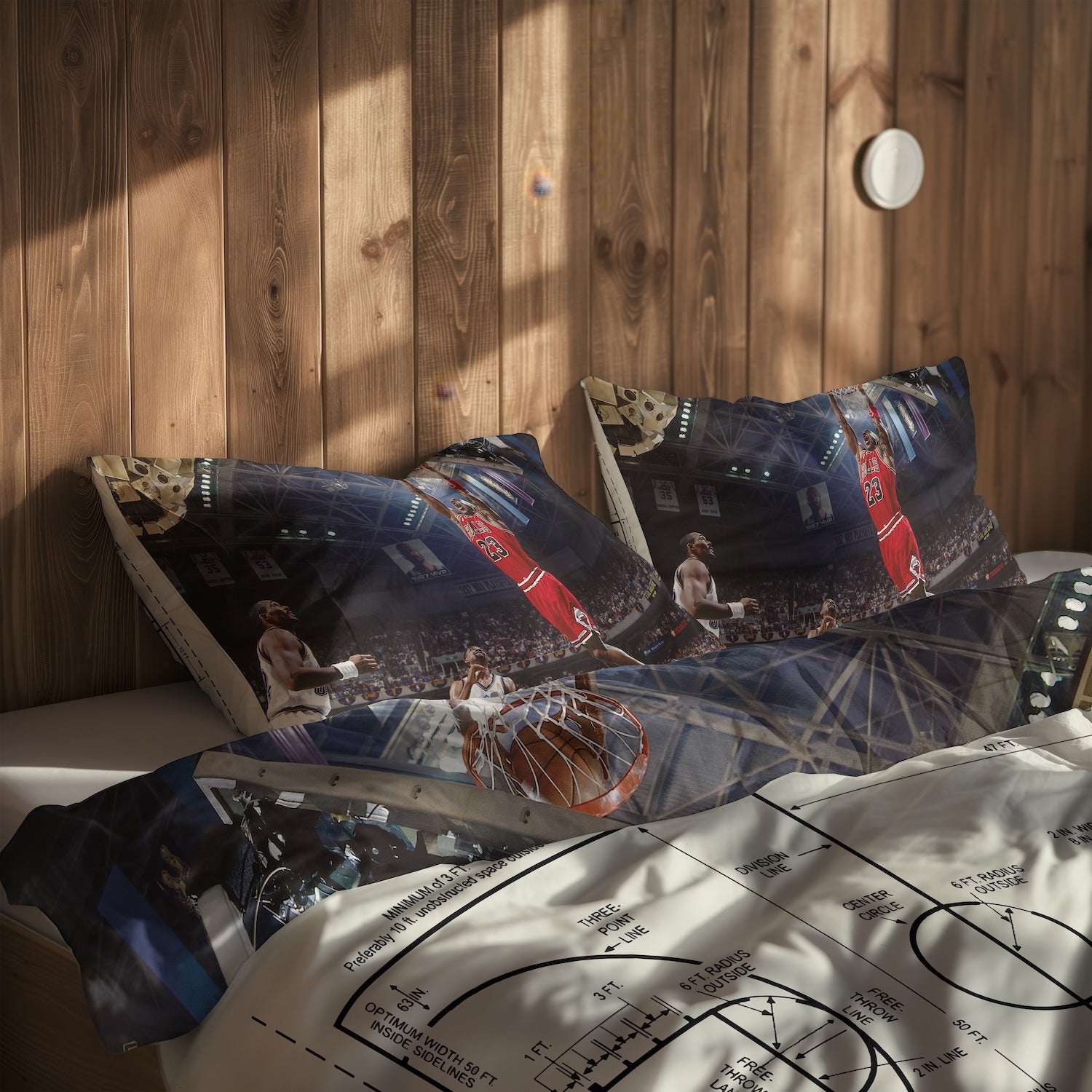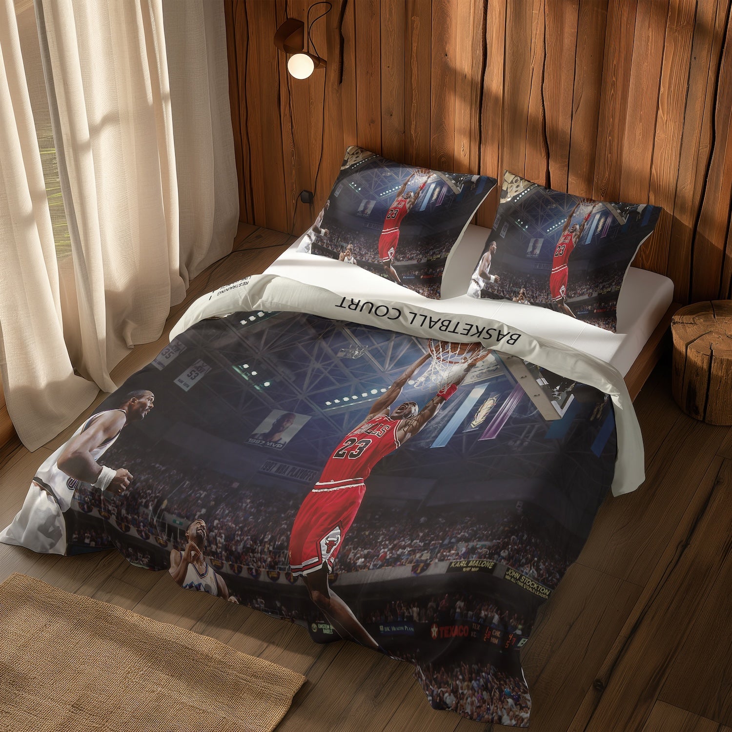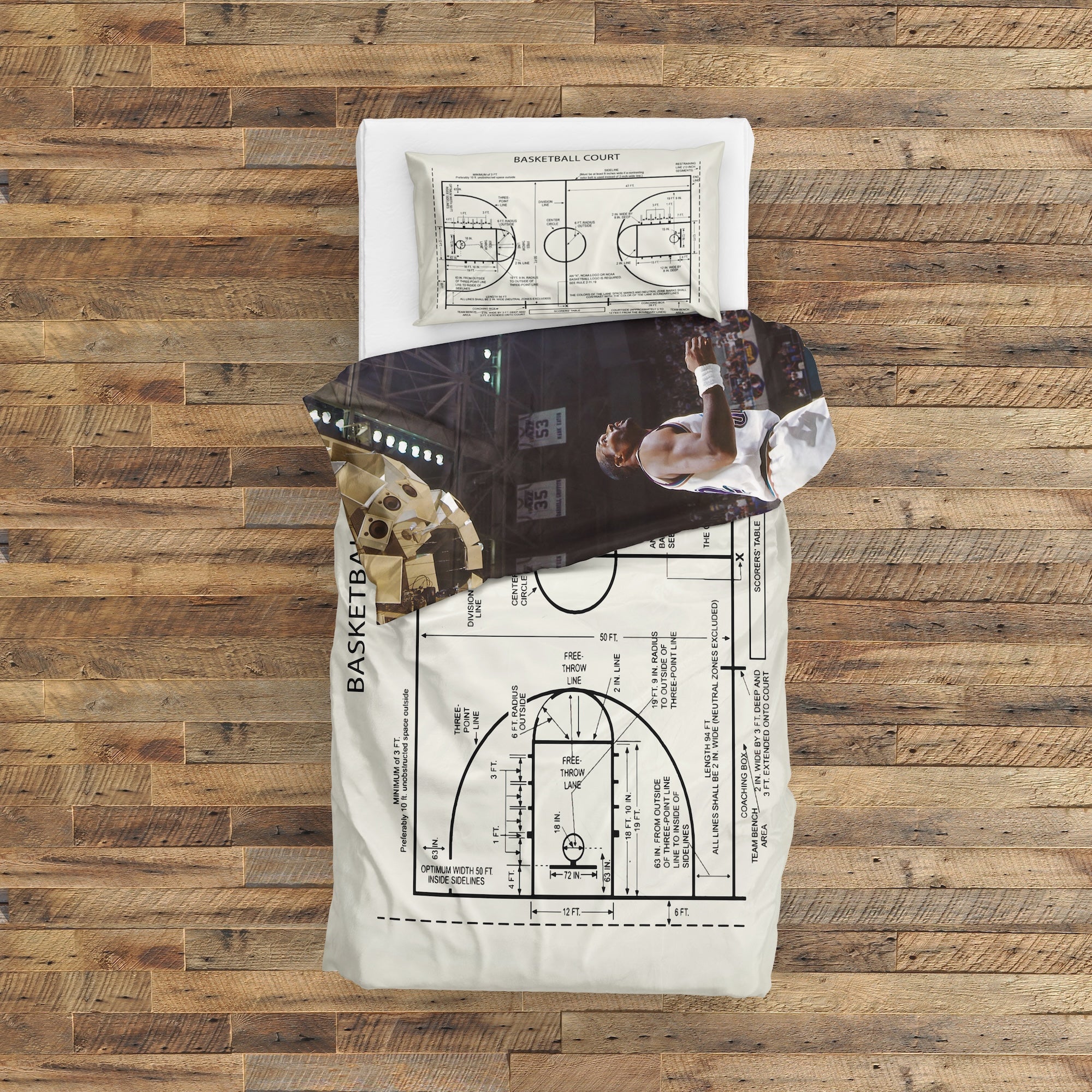 Michael Jordan Chicago Bulls 1997 & Basketball Court Ivory Çift Taraflı Nevresim Takımı