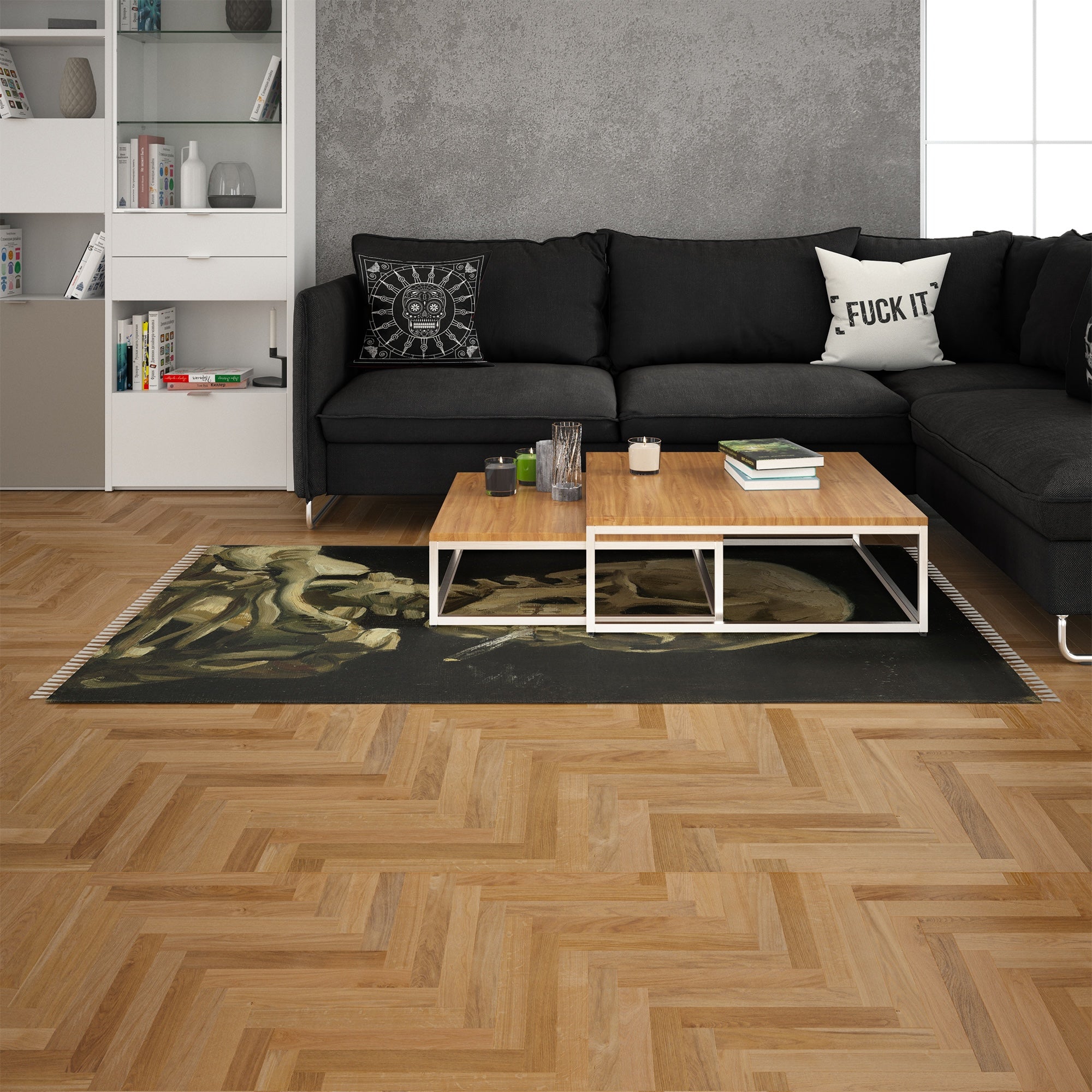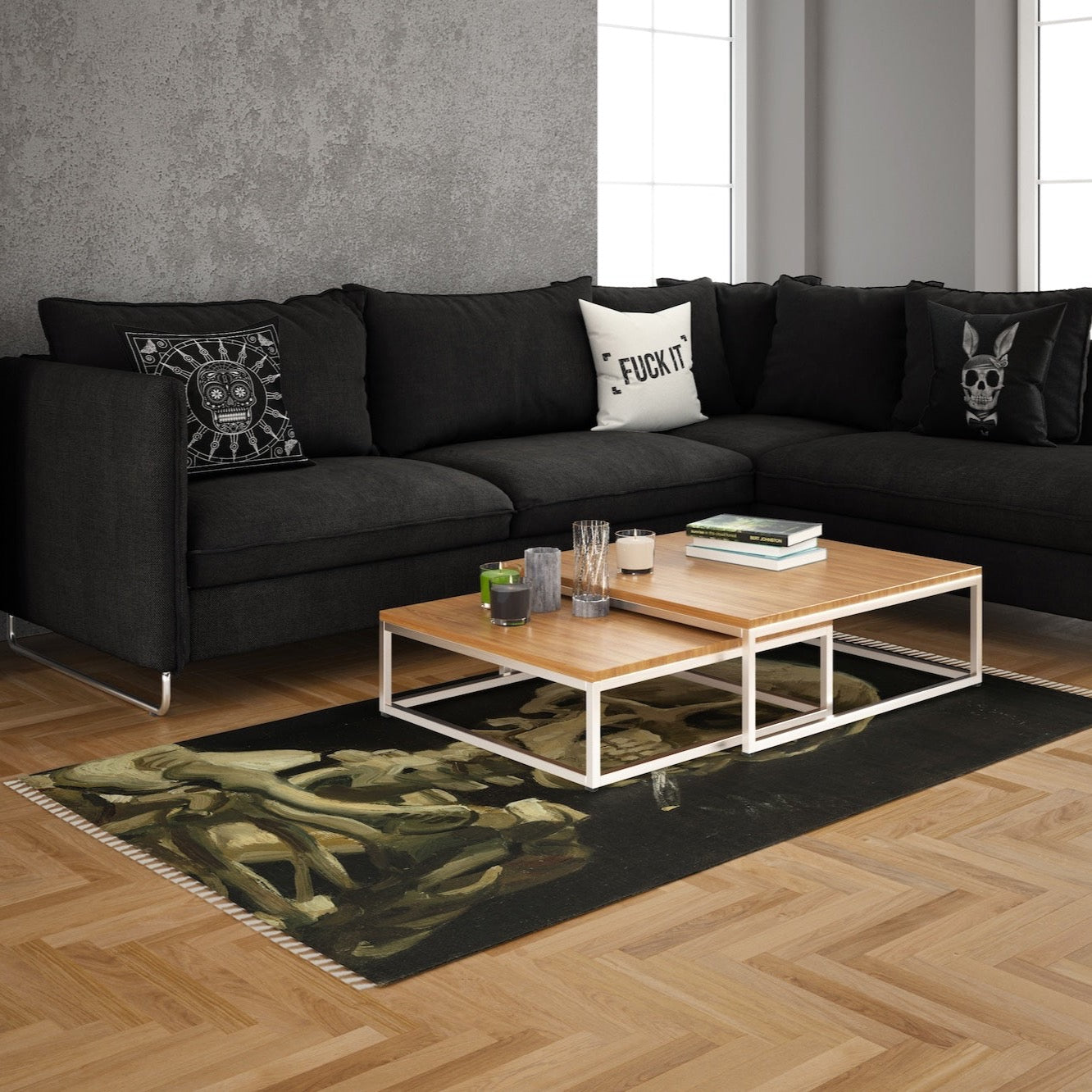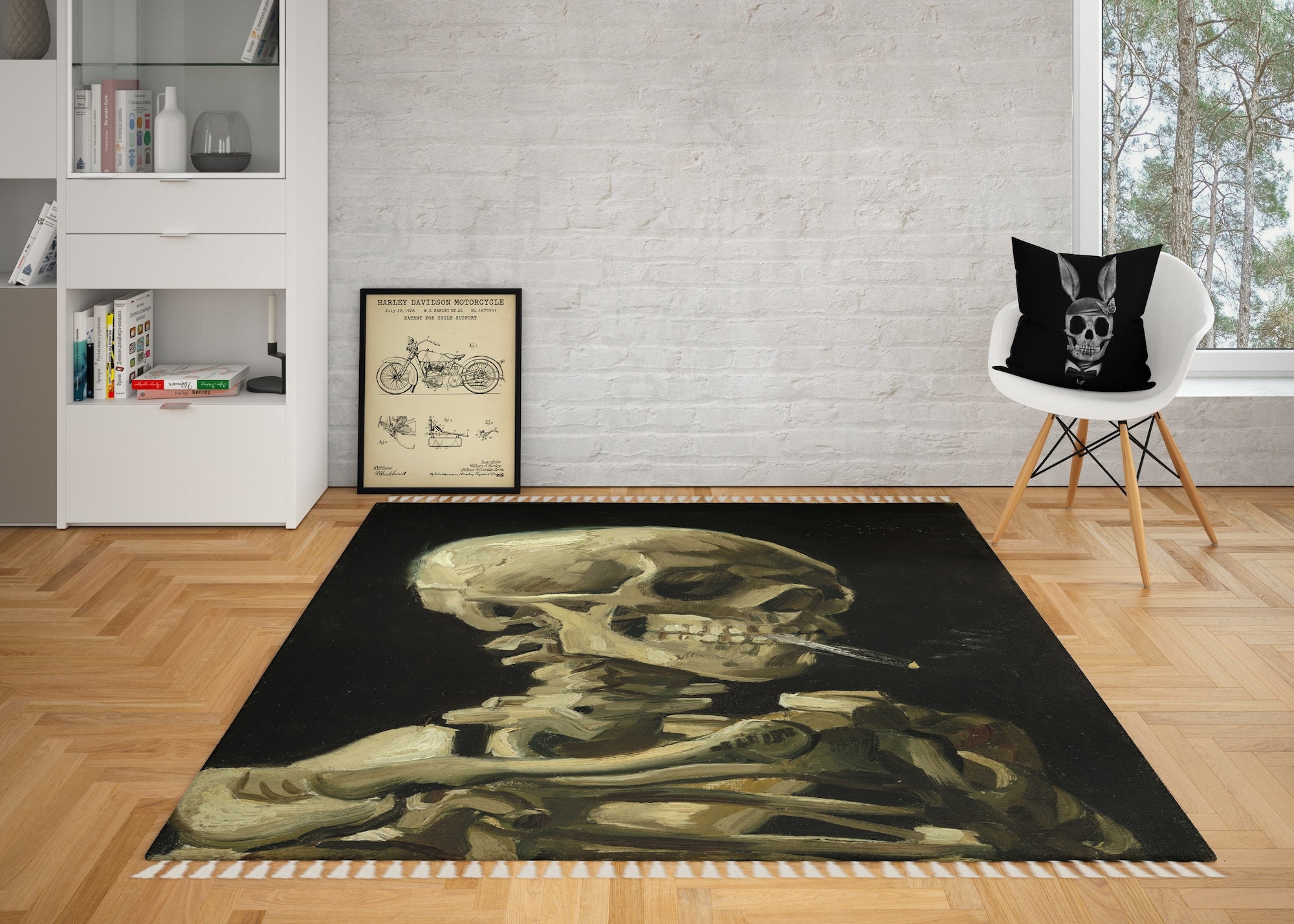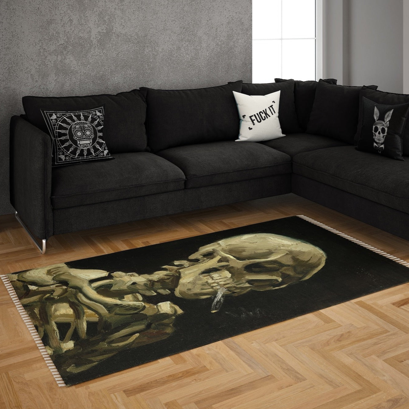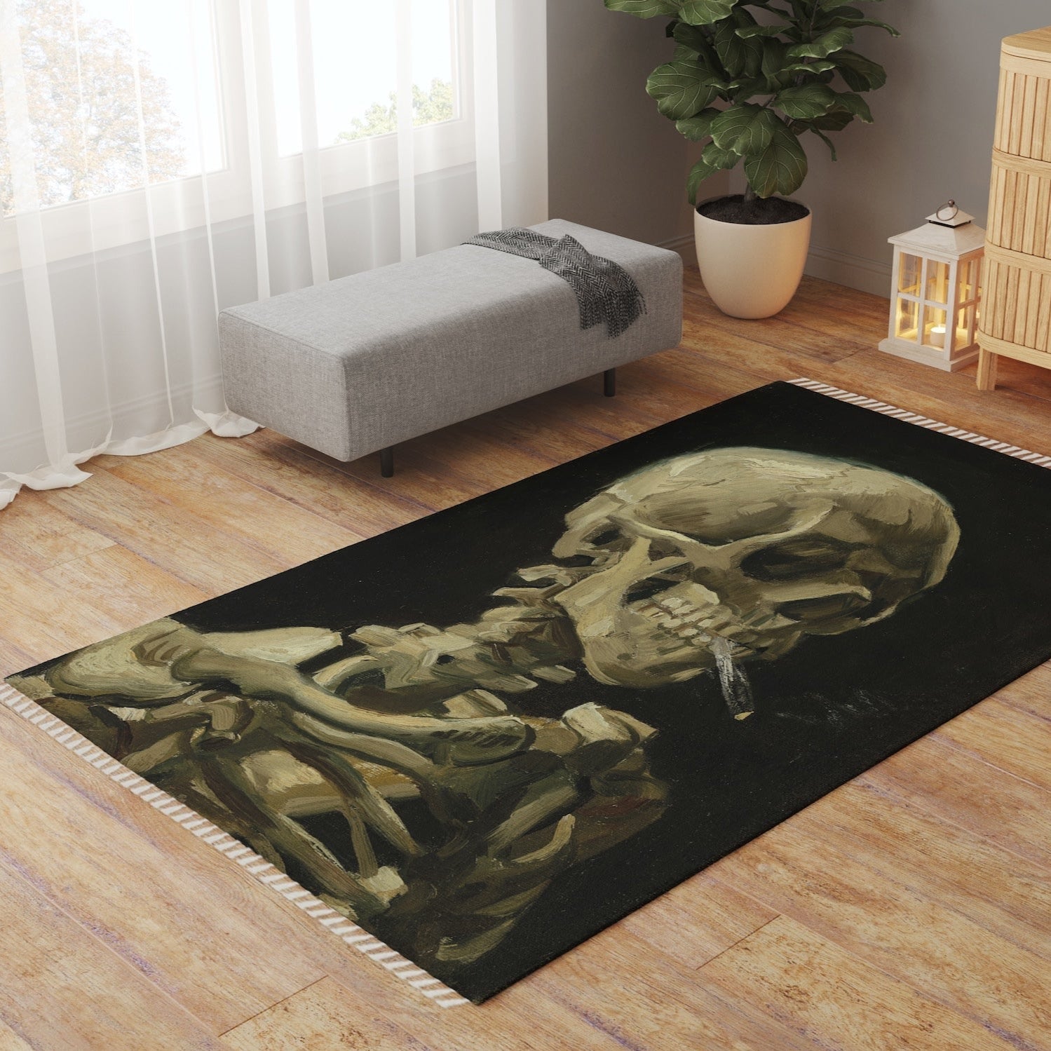 Skull of a Skeleton with Burning Cigarette Halı