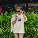 Modern ve rahat bir stilin anahtarı olan bu oversize baskılı tişört, %100 pamuklu supreme örme kumaş ile tasarlandı. Tek yüzlü örgü tekniğiyle elde edilen bu özel kumaş, pürüzsüz dokusu ve yumuşacık hissiyle cildinize nazikçe temas eder.