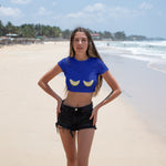 Ön kısmında yer alan dikkat çekici baskılı tasarımı, crop t-shirt’e dinamik ve modern bir görünüm kazandırır. Crop kesimiyle yüksek bel pantolon, şort veya eteklerle kolayca kombinlenerek tarzınızı ön plana çıkarır.