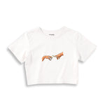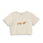Ön kısmında yer alan dikkat çekici baskılı tasarımı, crop t-shirt’e dinamik ve modern bir görünüm kazandırır. Crop kesimiyle yüksek bel pantolon, şort veya eteklerle kolayca kombinlenerek tarzınızı ön plana çıkarır.