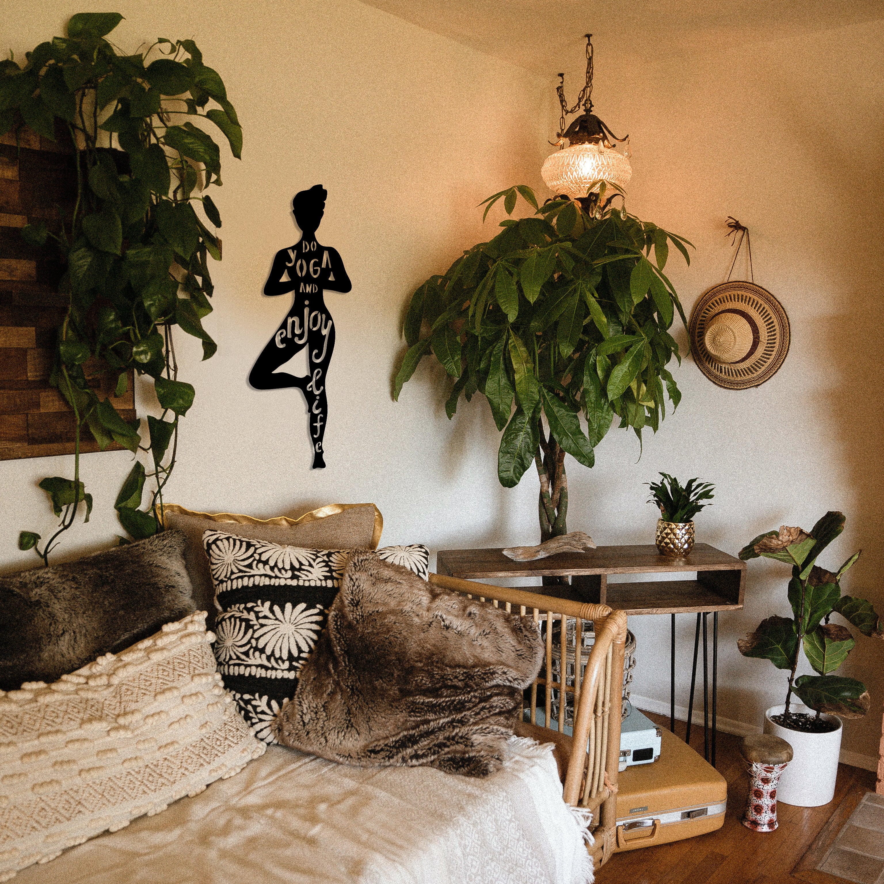 Kişinin ruhsal ve bedensel dengesini sağlayarak huzur bulmasına yardımcı olan yoganın hareketlerinden esinlenerek YOGA metal duvar dekorunu tasarladık. Artık sadece yoga yaparak değil Yoga metal dekorunuz ile de huzurlu dinlenmeler sağlayabilirsiniz.