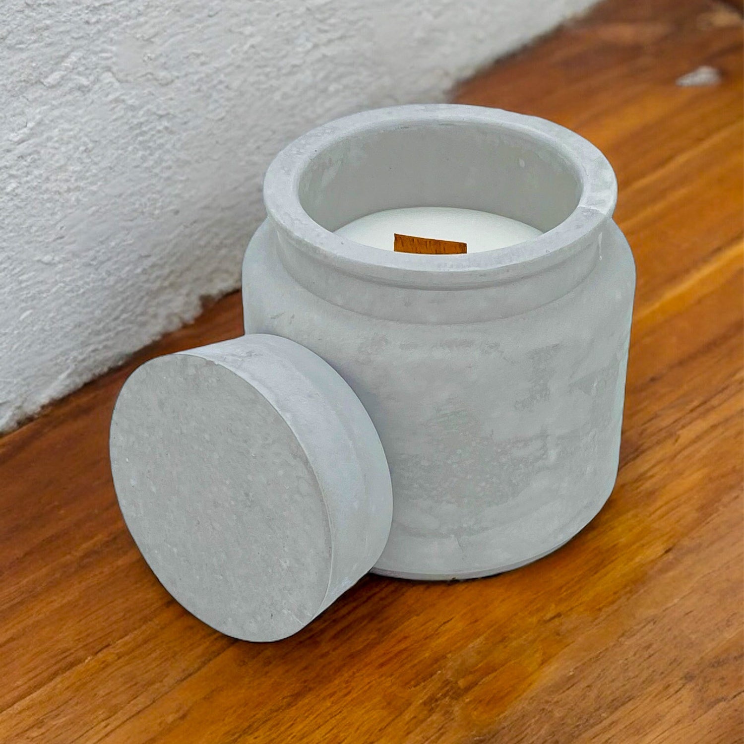 Sandal Ağacı - Vanilya Kokulu Ahşap Fitilli Kapaklı Kavanoz Beton Mum