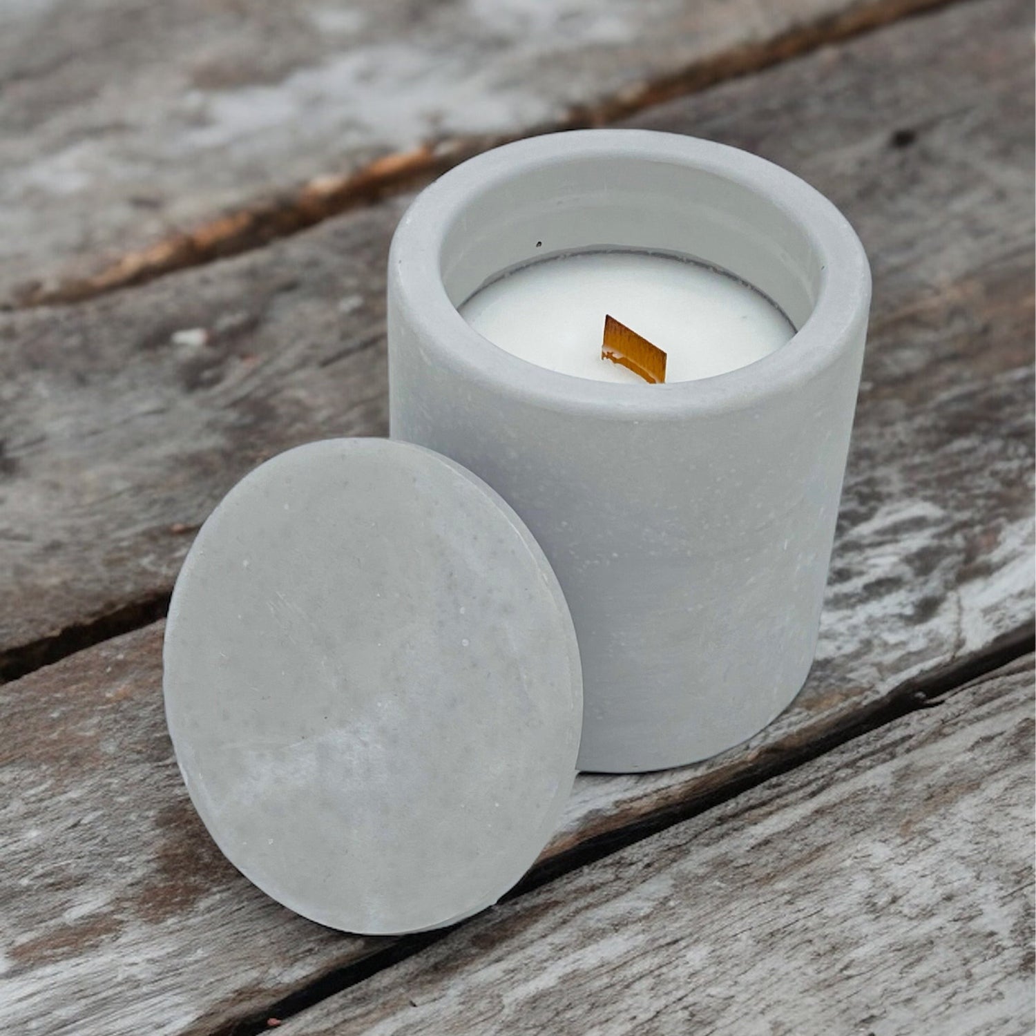 Sandal Ağacı - Vanilya Kokulu Ahşap Fitilli Kapaklı Silindir Beton Mum