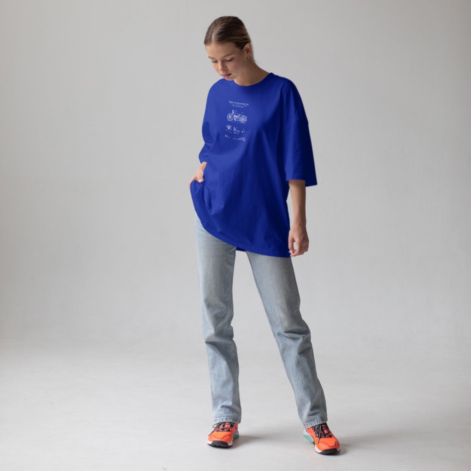 Modern ve rahat bir stilin anahtarı olan bu oversize baskılı tişört, %100 pamuklu supreme örme kumaş ile tasarlandı. Tek yüzlü örgü tekniğiyle elde edilen bu özel kumaş, pürüzsüz dokusu ve yumuşacık hissiyle cildinize nazikçe temas eder.