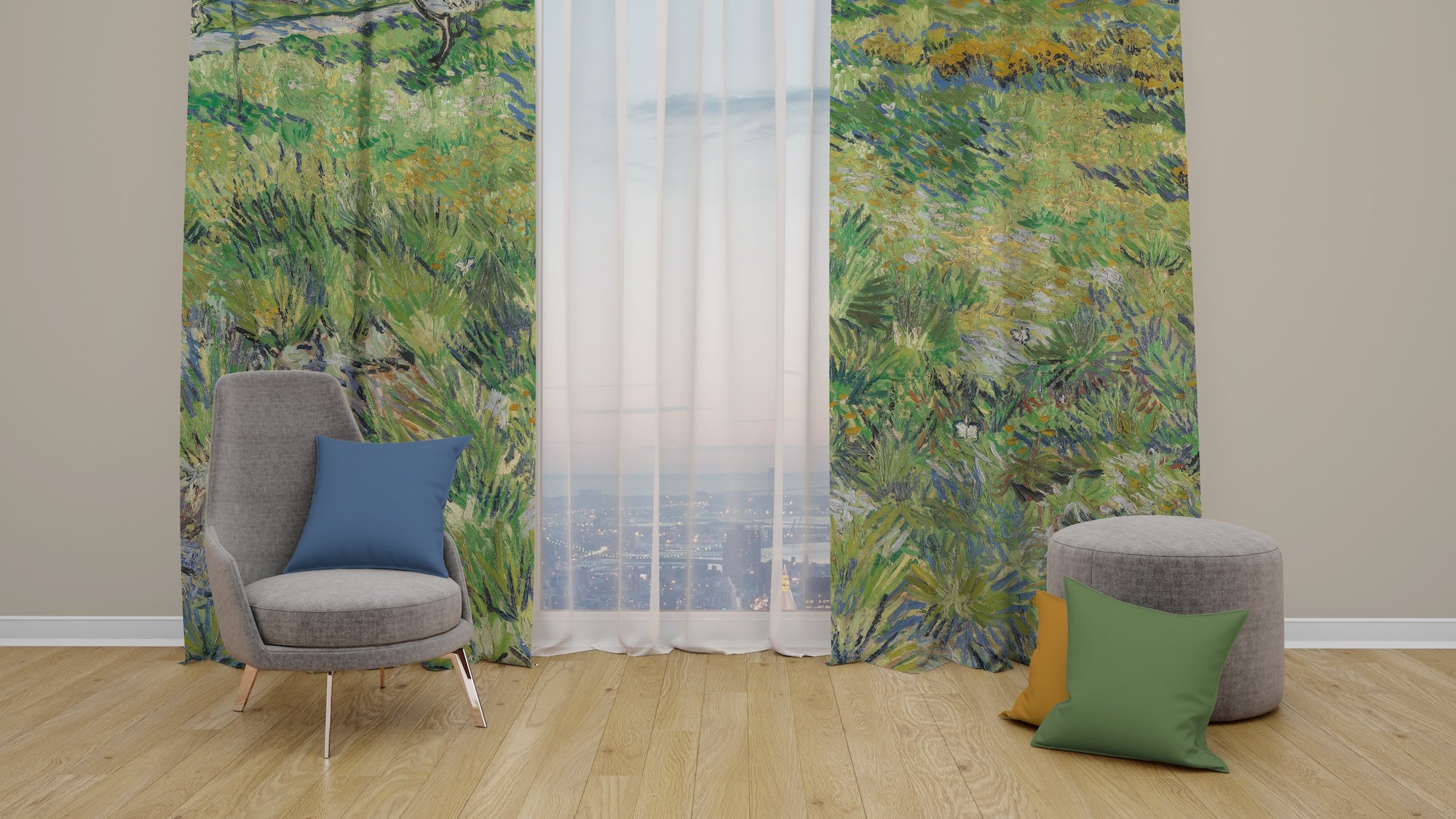 Dijital baskılı fon perdeler, yüksek baskı kalitesi ile alanlarınıza benzersiz bir hava verir. Genel ışık seviyesini azaltırken odanın dışardan görünmesini de engelleyerek gizlilik sağlar.