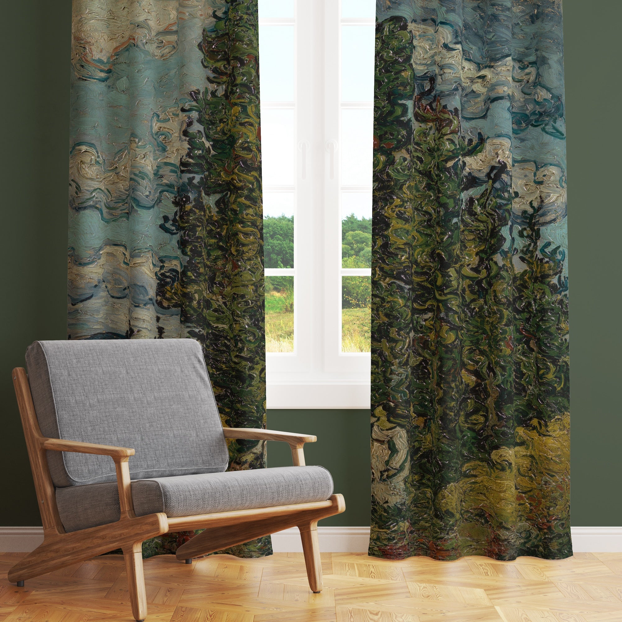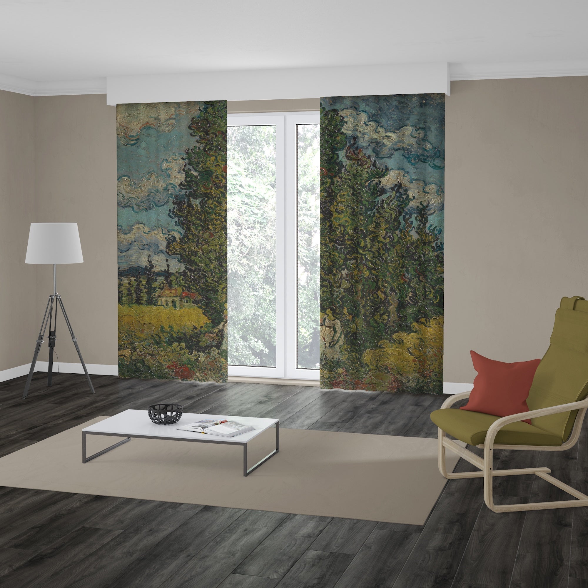 Selviler ve İki Kadın Fon Perde