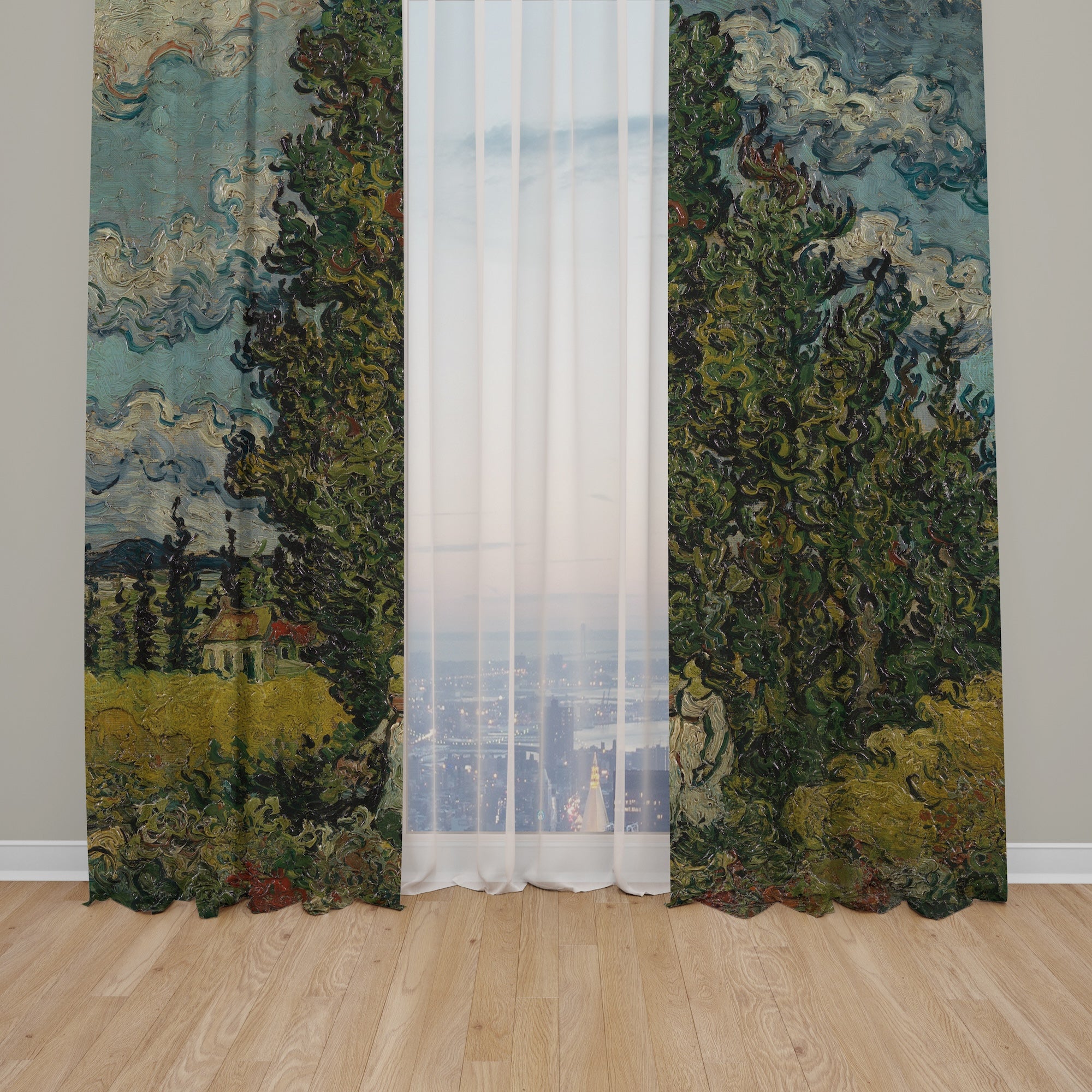 Dijital baskılı fon perdeler, yüksek baskı kalitesi ile alanlarınıza benzersiz bir hava verir. Genel ışık seviyesini azaltırken odanın dışardan görünmesini de engelleyerek gizlilik sağlar.