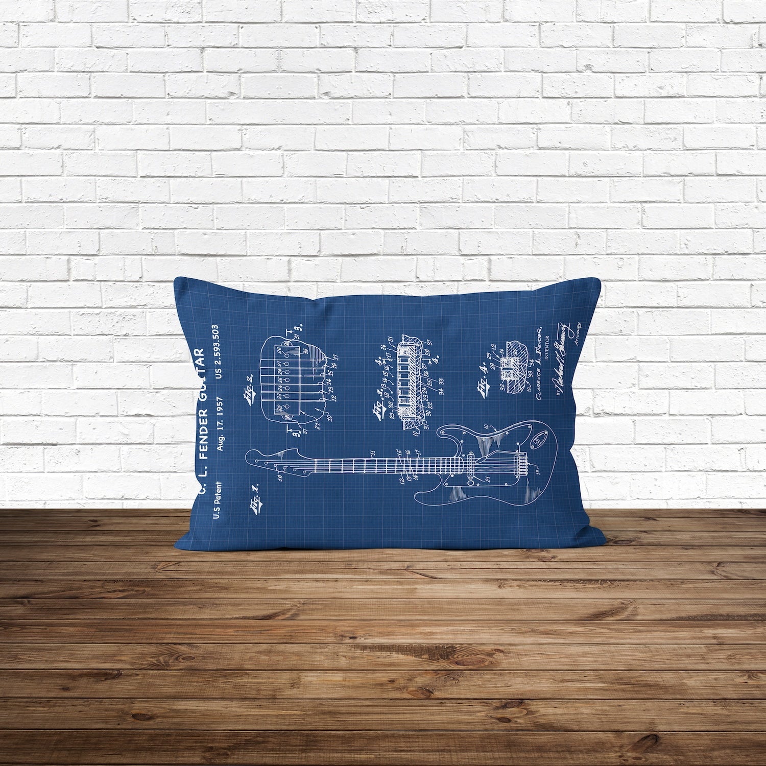 Fender Stratocaster Gitar Blueprint Çift Taraflı Yastık Kılıfı 2 Adet