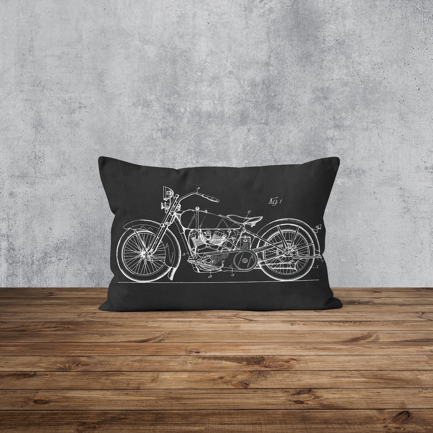Harley Davidson Model 28B Motosiklet Chalkboard Çift Taraflı Yastık Kılıfı 2 Adet