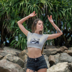 Ön kısmında yer alan dikkat çekici baskılı tasarımı, crop t-shirt’e dinamik ve modern bir görünüm kazandırır. Crop kesimiyle yüksek bel pantolon, şort veya eteklerle kolayca kombinlenerek tarzınızı ön plana çıkarır.